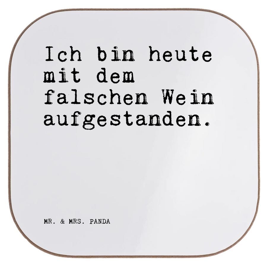 Der perfekte Untersetzer von Mr. & Mrs. Panda mit dem witzigen Spruch "Ich bin heute mit dem falschen Wein aufgestanden." ist ein ganz besonderes Geschenk! Dieser quadratische Untersetzer ist nicht nur ein praktisches Accessoire zum Schutz deiner Möbel, sondern bringt auch ein Lächeln in jede Runde. Egal, ob du ihn für dich selbst kaufst oder als Geschenk für deine Freunde, Familie oder sogar Arbeitskollegen – dieser Untersetzer sorgt garantiert für gute Laune!