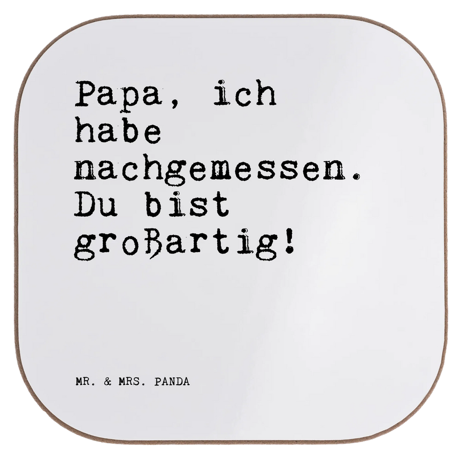 Quadratische Untersetzer Sprüche und Zitate Papa, ich habe nachgemessen. Du bist großartig! - Weiß