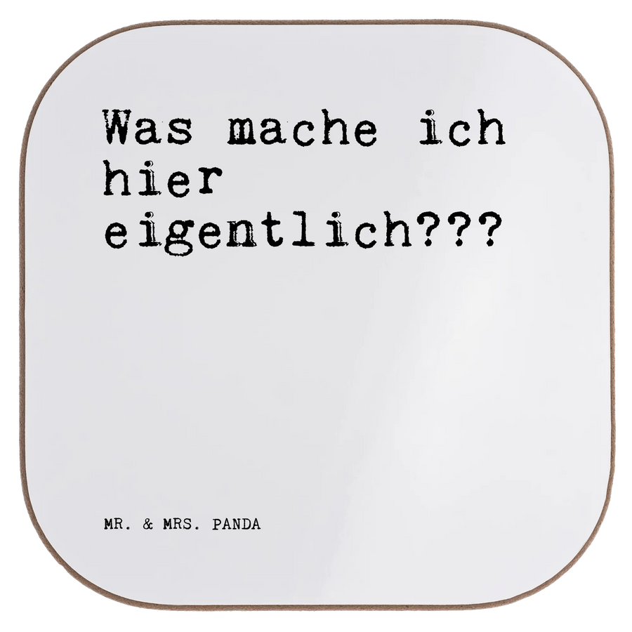 Quadratische Untersetzer Sprüche und Zitate Was mache ich hier eigentlich??? - Weiß