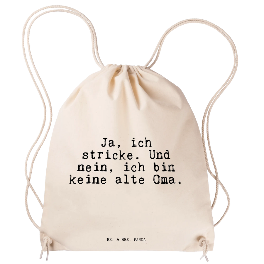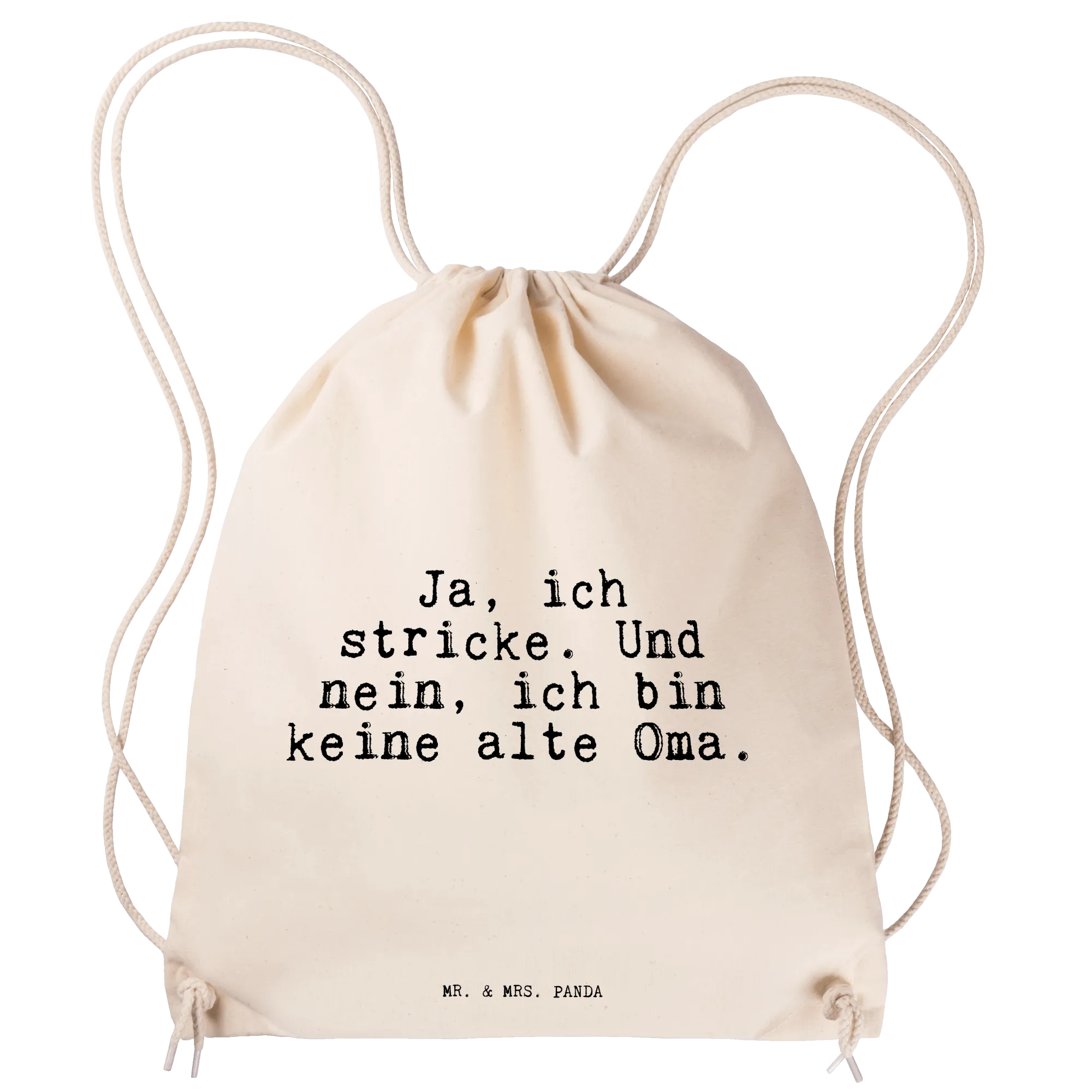 Mr. & Mrs. Panda präsentiert: Der Sportbeutel „Ja, ich stricke. Und nein, ich bin keine alte Oma.“ 🧶🎁 Dieser freche Beutel aus der Spruchreif Kollektion verbindet Humor mit Alltagstauglichkeit und ist der ideale Begleiter für alle, die ihr Hobby mit Stolz zeigen möchten.