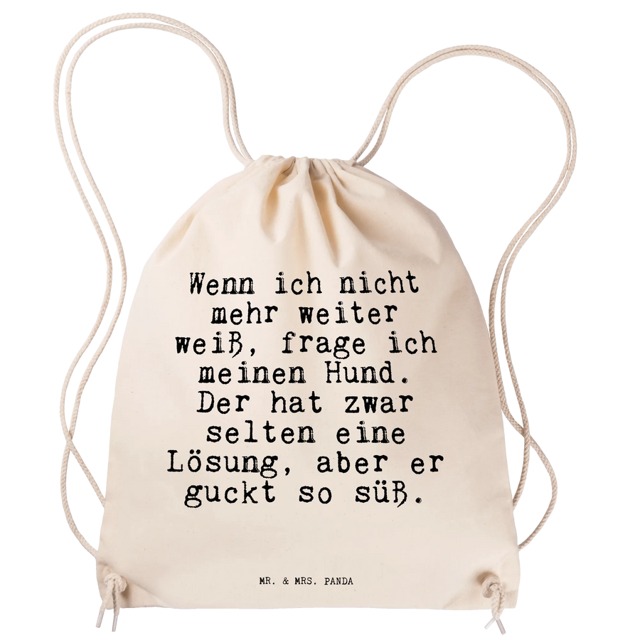 Sportbeutel Sprüche und Zitate Wenn ich nicht mehr weiter weiß, frage ich meinen Hund. Der hat zwar selten eine Lösung, aber er guckt so süß. - Transparent