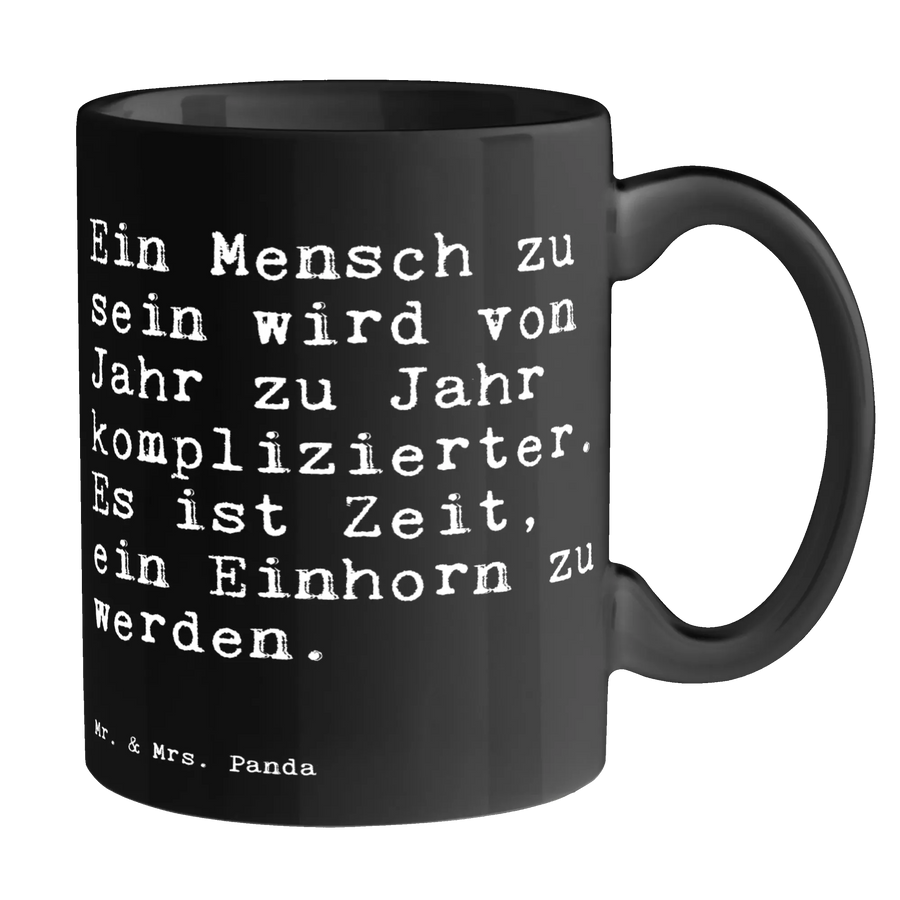 Tasse Sprüche und Zitate Ein Mensch zu sein wird von Jahr zu Jahr komplizierter. Es ist Zeit, ein Einhorn zu werden. - Keramik Schwarz - Schwarz