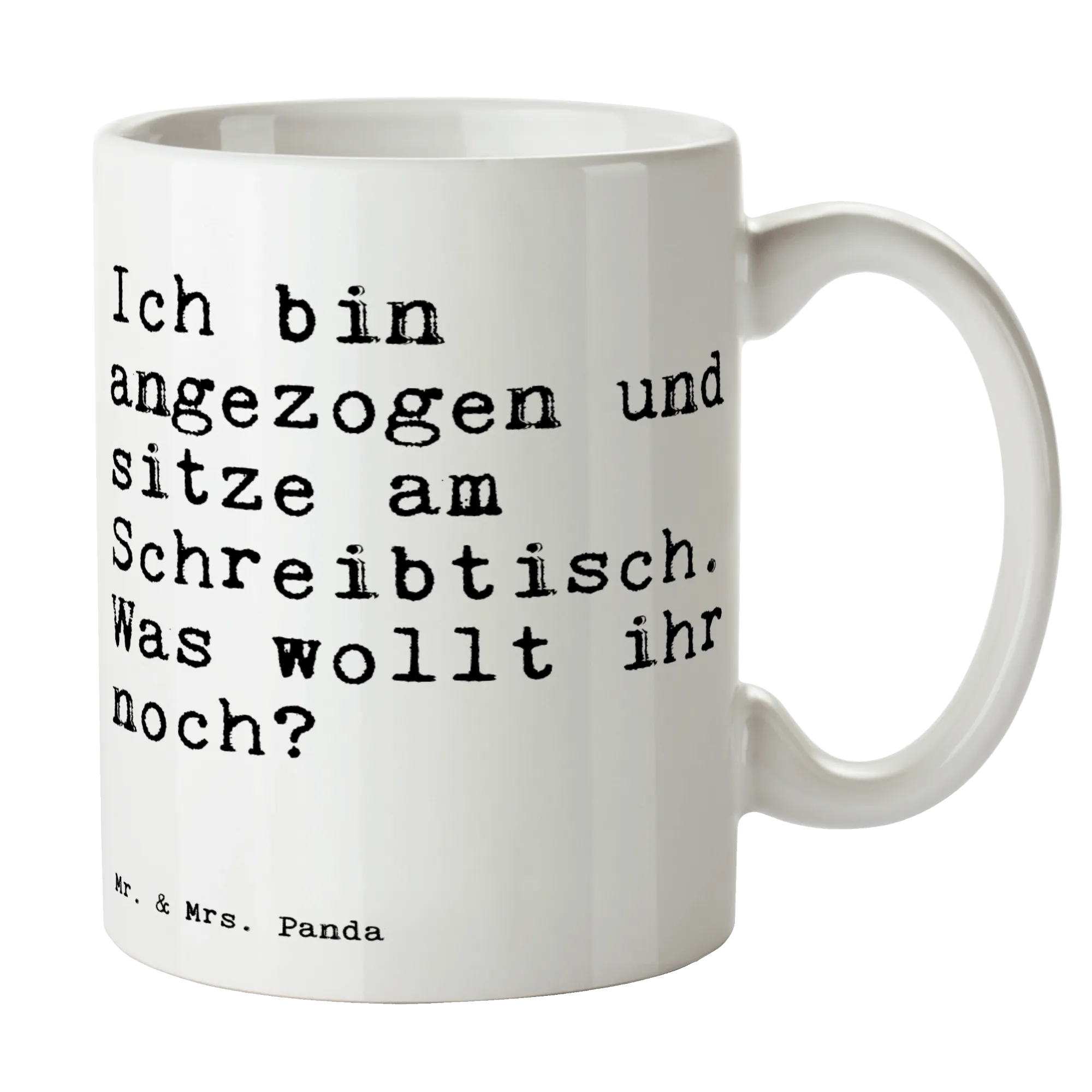 Tasse Sprüche und Zitate Ich bin angezogen und sitze am Schreibtisch. Was wollt ihr noch? - Keramik - Weiß