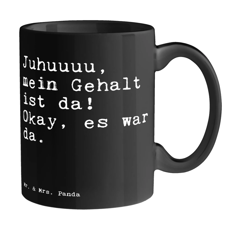 Tasse Sprüche und Zitate Juhuuuu, mein Gehalt ist da! Okay, es war da. - Keramik Schwarz - Schwarz