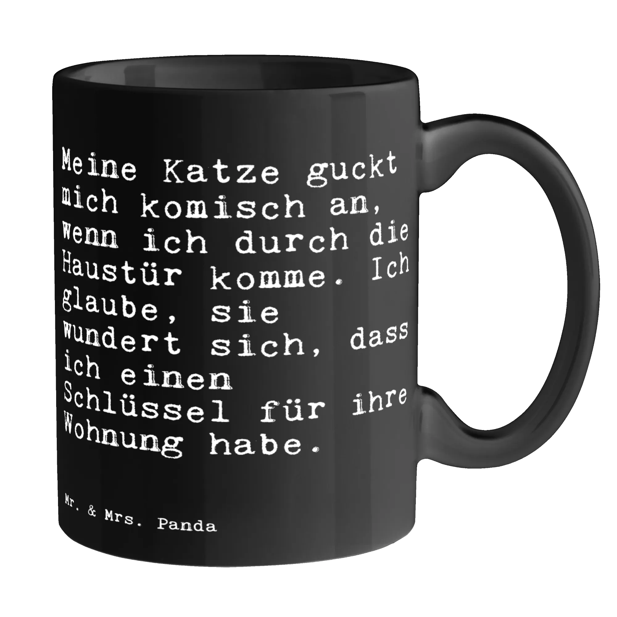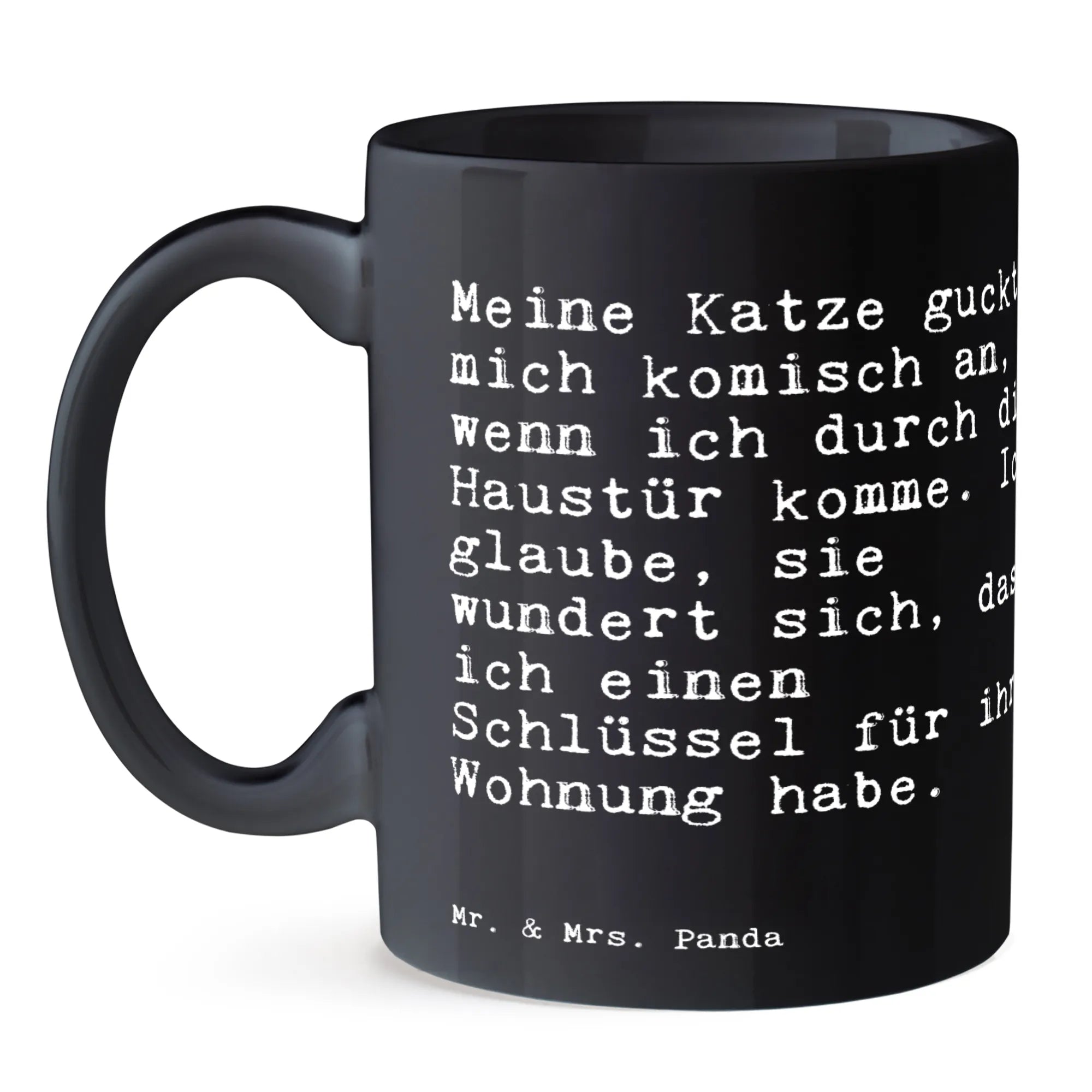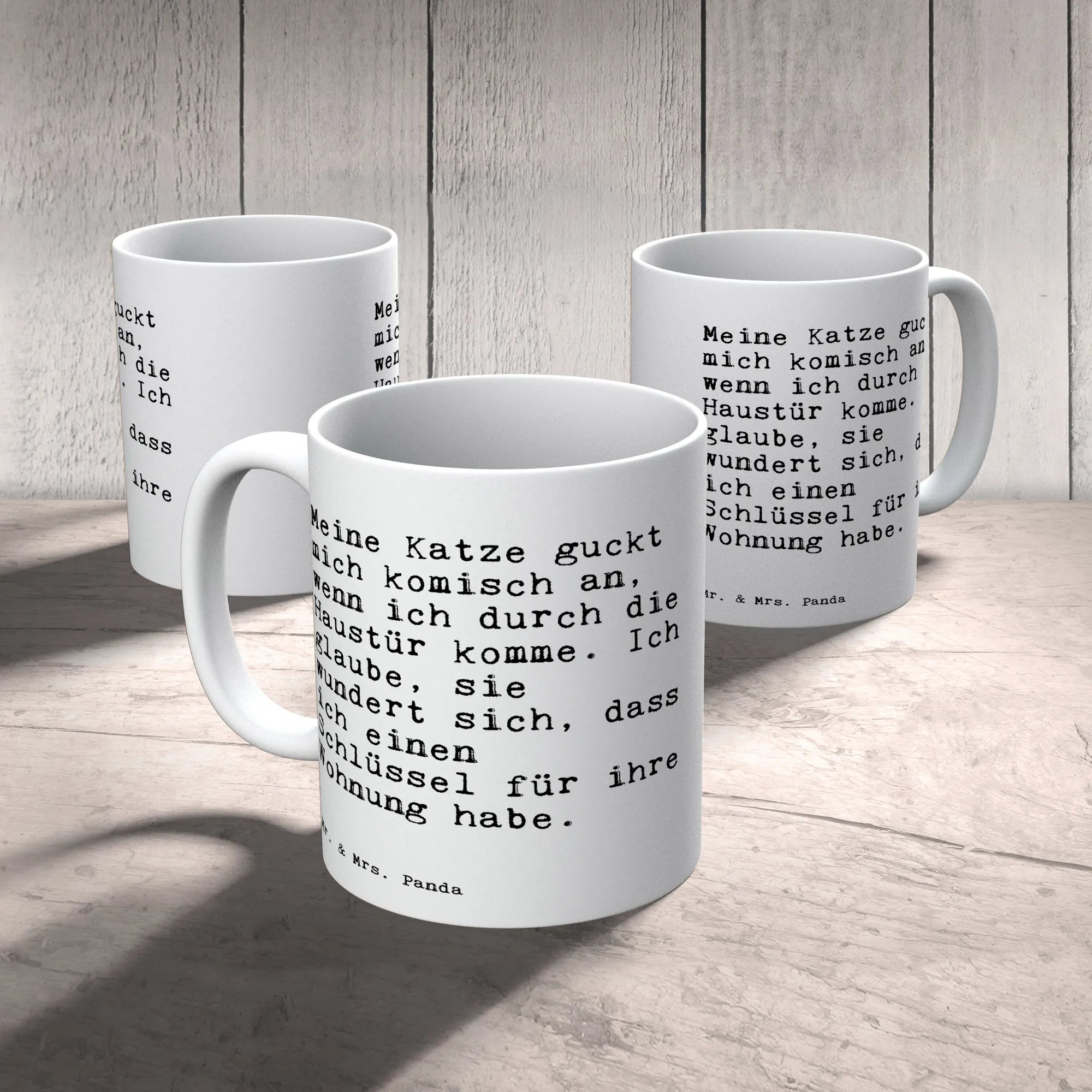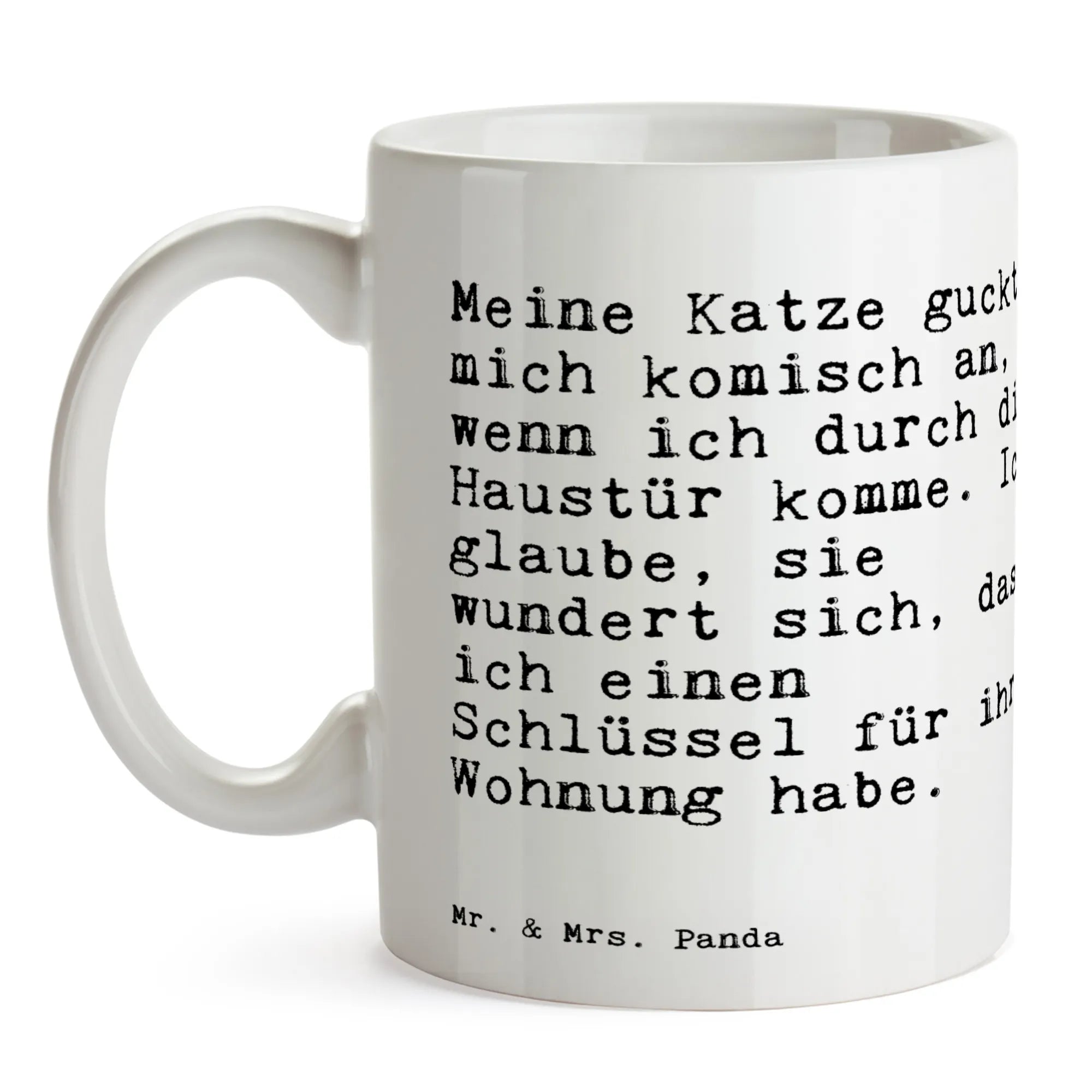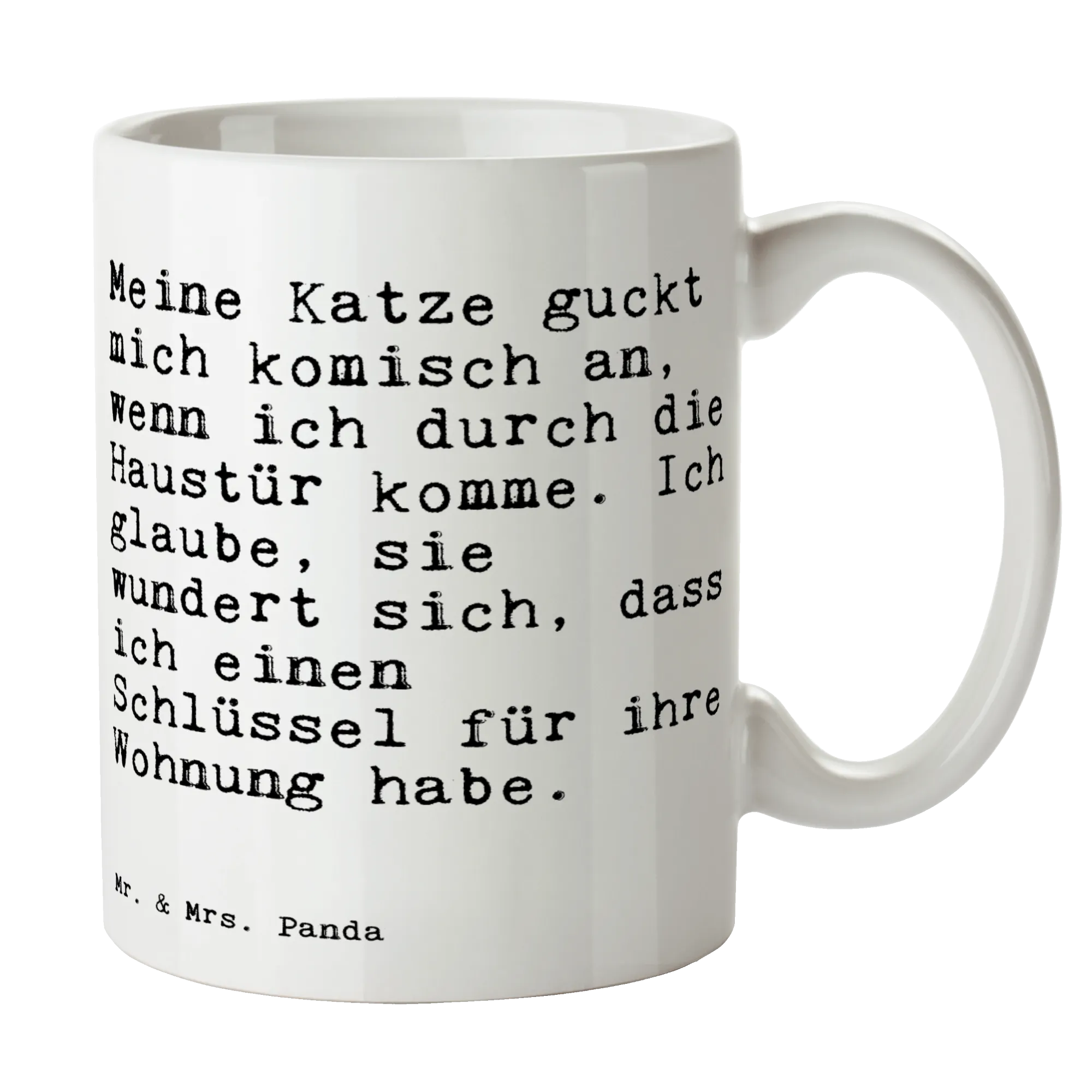 Tasse Sprüche und Zitate Meine Katze guckt mich komisch an, wenn ich durch die Haustür komme. Ich glaube, sie wundert sich, dass ich einen Schlüssel für ihre Wohnung habe. - Keramik - Weiß