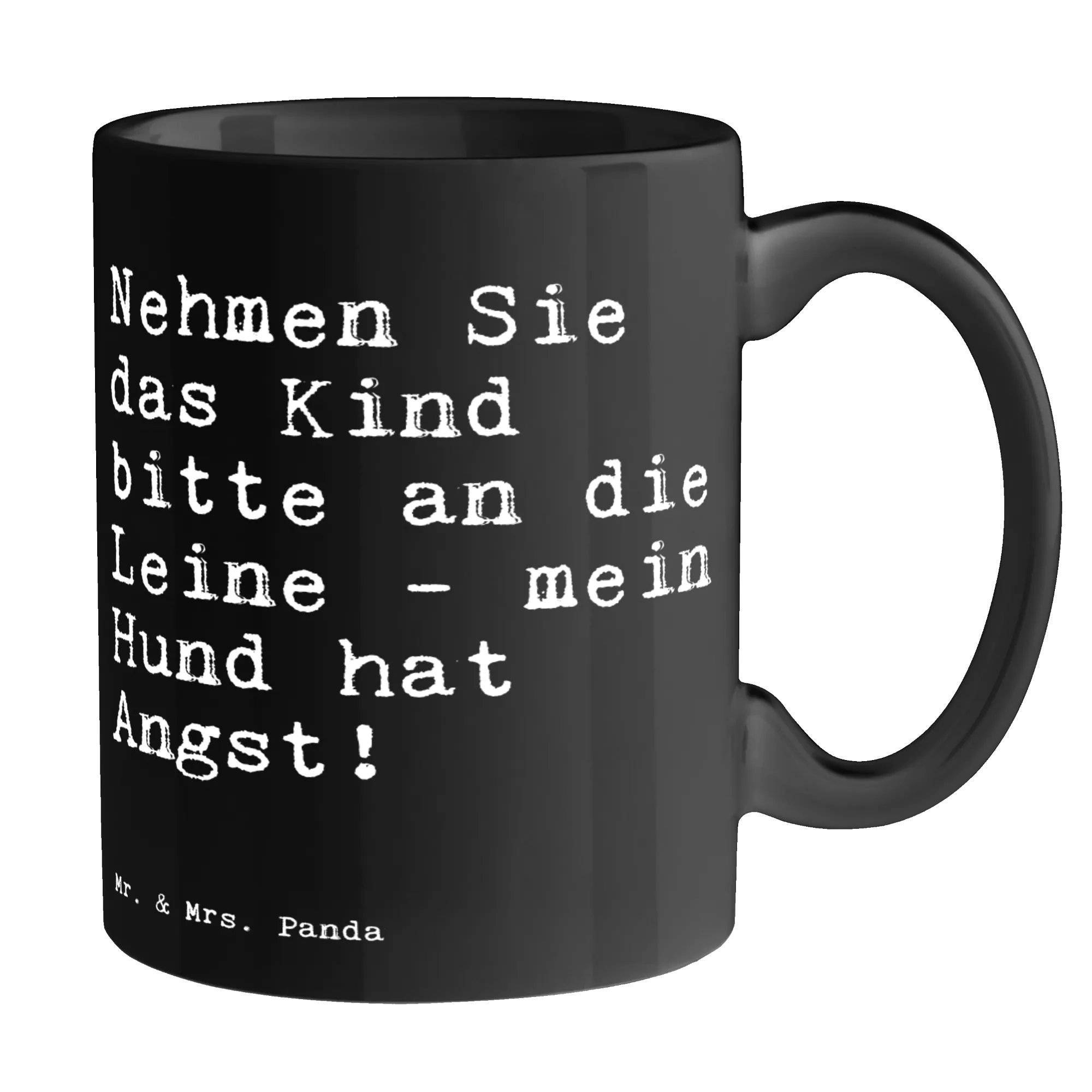 Tasse Sprüche und Zitate Nehmen Sie das Kind bitte an die Leine - mein Hund hat Angst! - Keramik Schwarz - Schwarz
