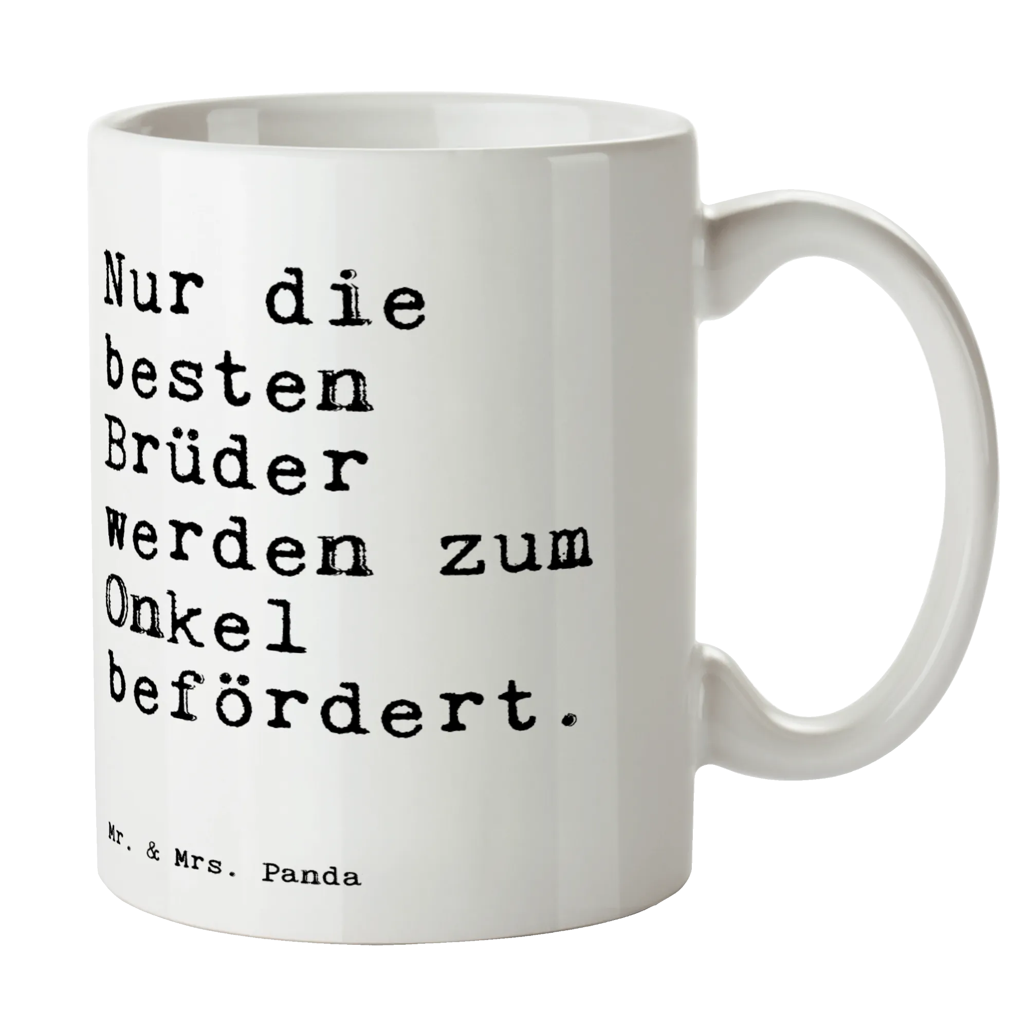 Besonders geeignet sowohl für jüngere als auch für ältere Brüder, ist diese Tasse das ideale Geschenk für alle, die eine innige Verbindung zu ihrer Familie haben. Online bestellbar, wirst du mit dieser Tasse allen Onkels ein breites Grinsen ins Gesicht zaubern. Mach deinem Bruder eine Freude und schicke ihm dieses einzigartige Geschenk, das ihn an seine neue Rolle erinnern wird – täglich beim Kaffeetrinken! Mit dieser wundervollen Tasse von Mr. & Mrs. Panda wird jeder Schluck zu einem besonderen Moment.