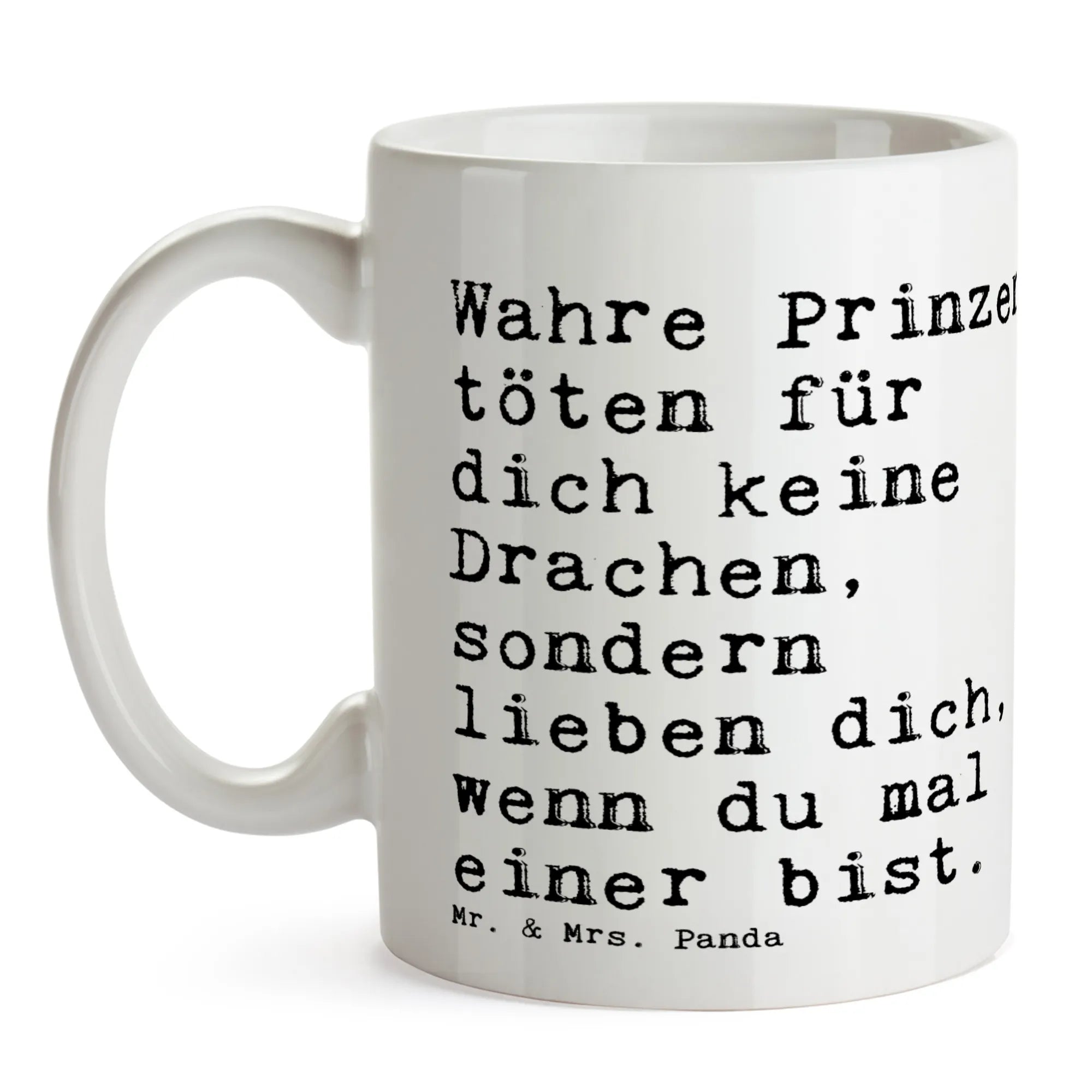 Tasse Sprüche und Zitate Wahre Prinzen töten für dich keine Drachen, sondern lieben dich, wenn du mal einer bist. - Keramik Schwarz - Schwarz