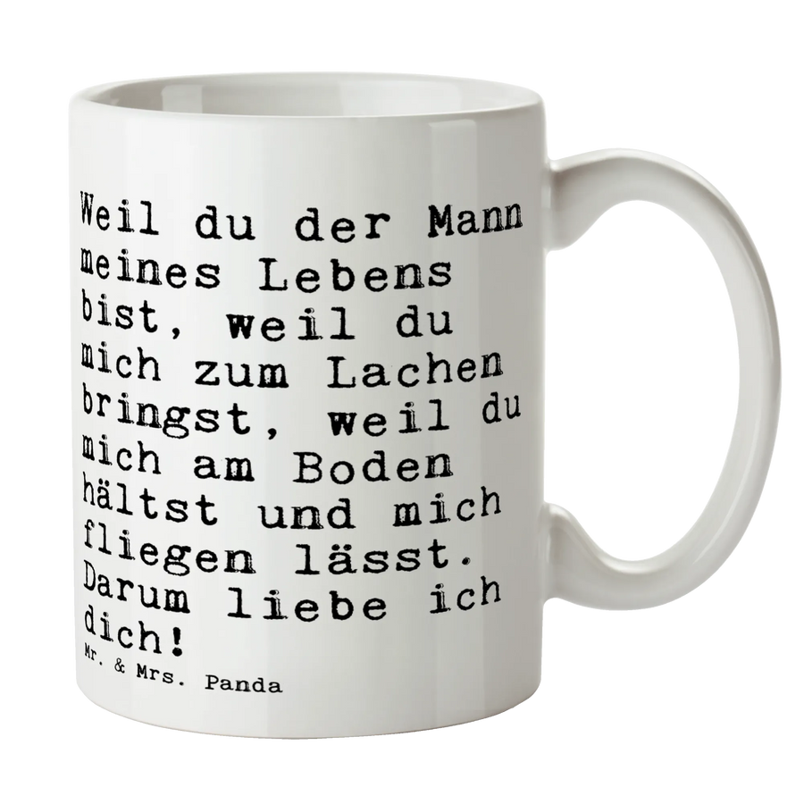 Die wunderschöne Tasse "Weil du der Mann meines Lebens bist, weil du mich zum Lachen bringst, weil du mich am Boden hältst und mich fliegen lässt. Darum liebe ich dich!" von Mr. & Mrs. Panda ist das perfekte Geschenk für alle, die ihre Liebe auf eine besondere Art und Weise ausdrücken möchten. Egal, ob zum Valentinstag, Geburtstag oder einfach nur als Liebesbeweis – mit dieser Tasse zauberst du jedem ein Lächeln ins Gesicht.
