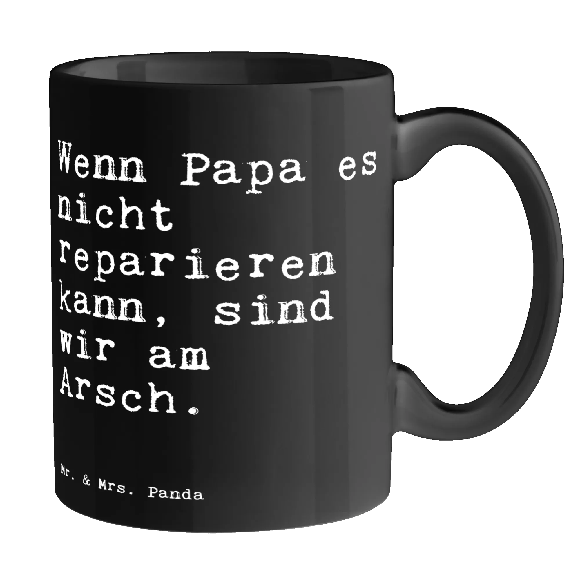 Suchst du das perfekte Geschenk für deinen Papa? Unsere Tasse mit dem Spruch "Wenn Papa es nicht reparieren kann, sind wir am Arsch." wird ihm garantiert ein Lächeln ins Gesicht zaubern! Diese wunderschöne, spülmaschinenfeste Keramiktasse von Mr. & Mrs. Panda ist nicht nur praktisch, sondern auch ein echtes Statement. Mit einem Fassungsvermögen von 325 ml ist sie ideal für seinen täglichen Kaffee oder Tee.