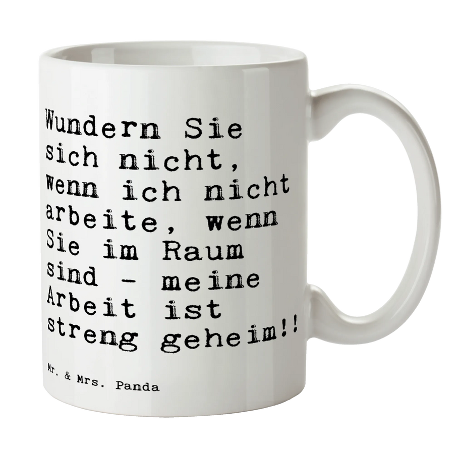 Du suchst nach dem perfekten Geschenk für Deine Arbeitskollegen oder Deinen Chef? Dann ist die wunderschöne Keramiktasse von Mr. & Mrs. Panda genau das Richtige! Mit dem amüsanten Spruch "Wundern Sie sich nicht, wenn ich nicht arbeite, wenn Sie im Raum sind - meine Arbeit ist streng geheim!!" wird jeder Kaffeepausen-Moment zum Highlight im Büro.
