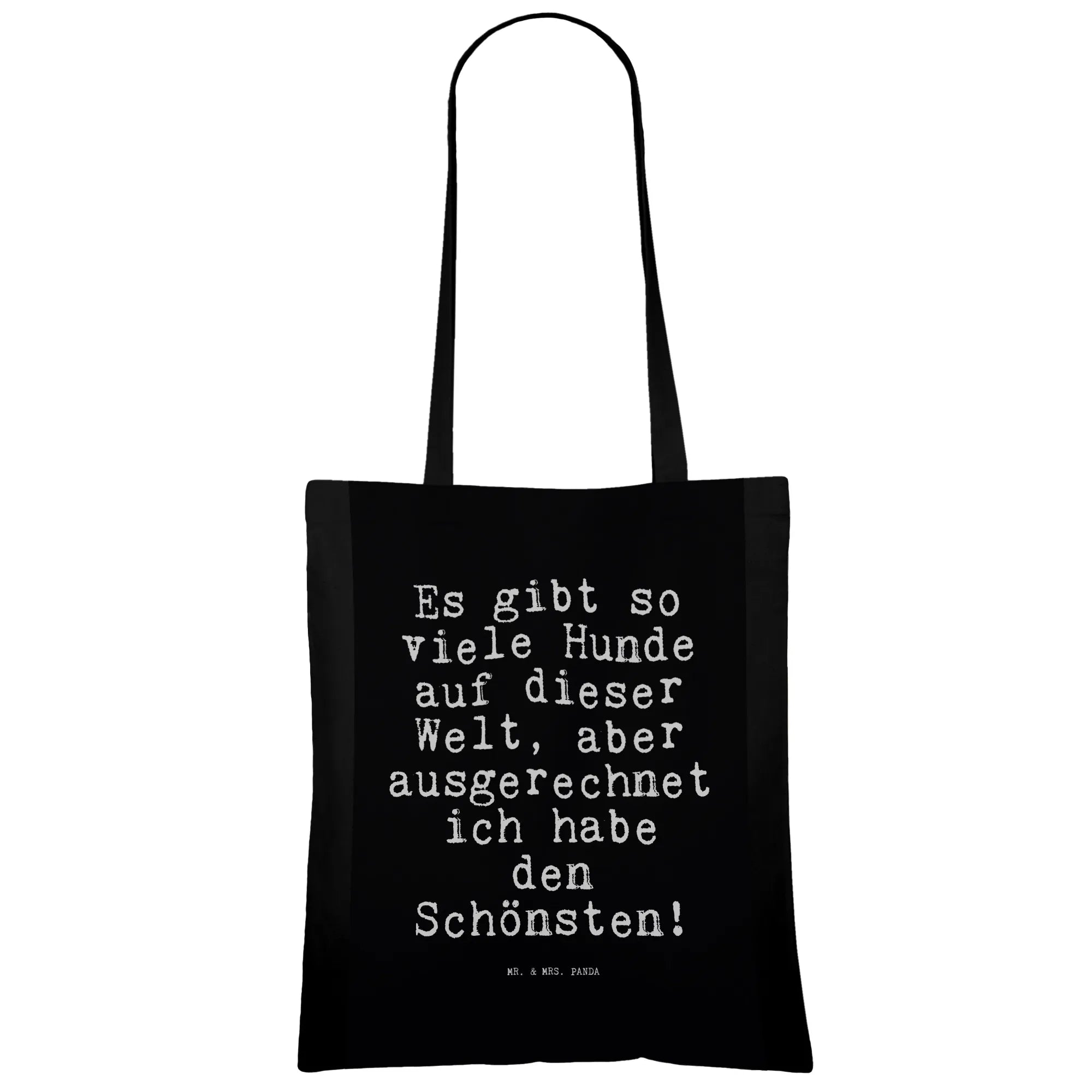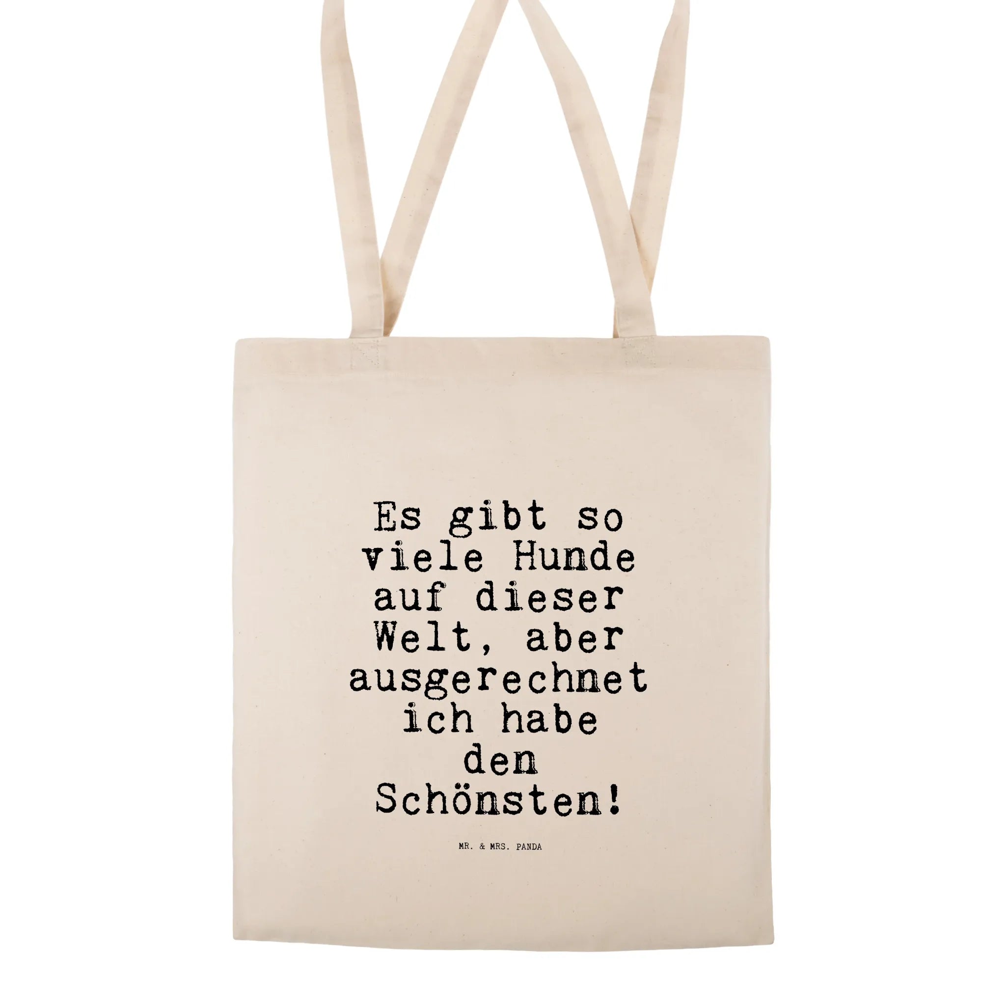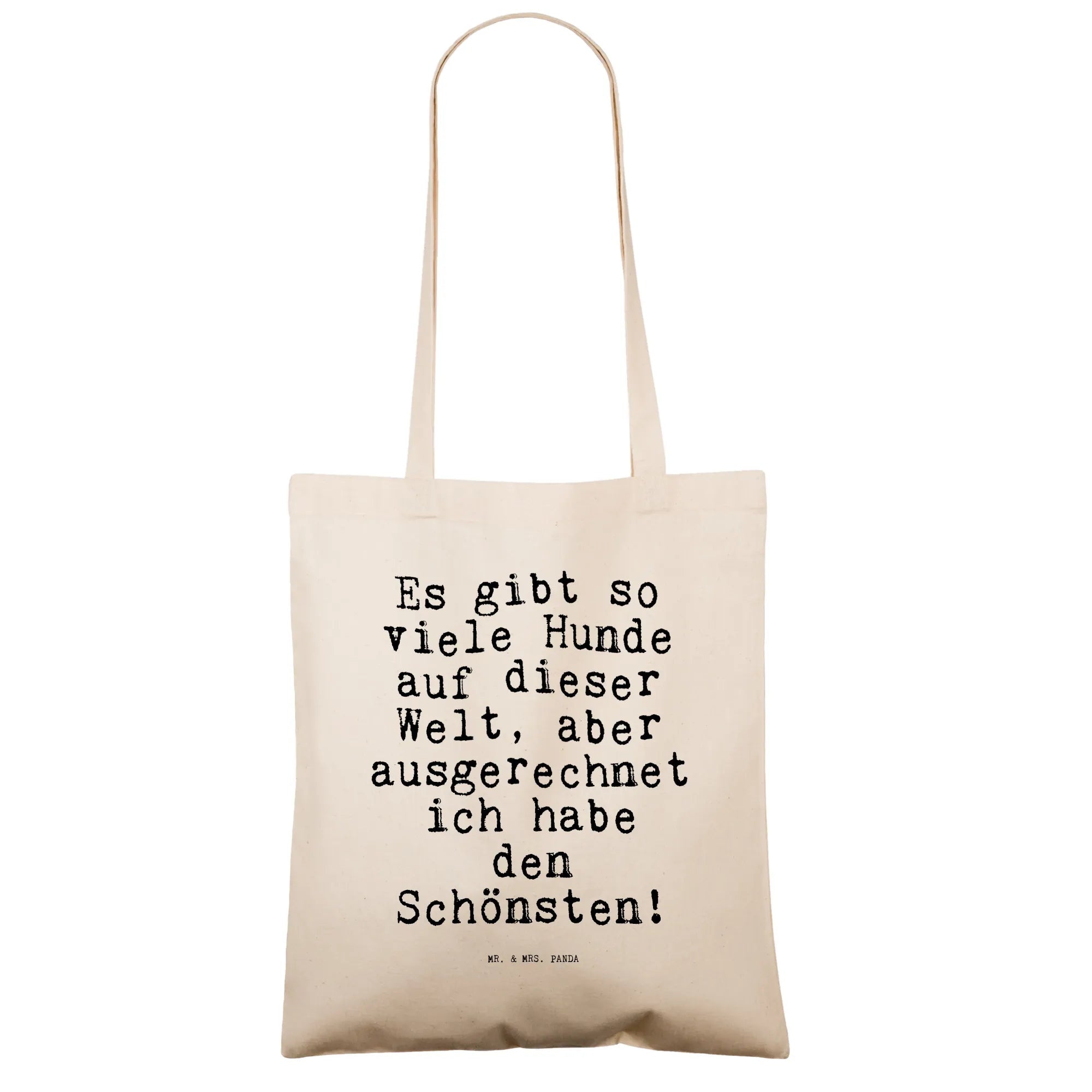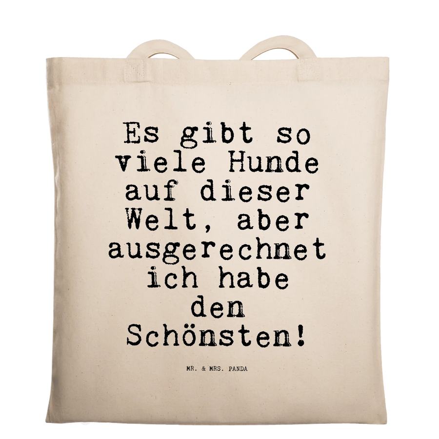 Du suchst eine liebevolle Tragetasche mit Herz und Humor? Unsere Tragetasche „Es gibt so viele Hunde auf dieser Welt, aber ausgerechnet ich habe den Schönsten!“ von Mr. & Mrs. Panda aus der Spruchreif-Kollektion ist genau das richtige Accessoire für alle Hundeliebhaber. 🐶❤️ Der freche Spruch in Hochkant-Anordnung macht die Tasche zu einem echten Hingucker – perfekt für Spaziergänge, den Einkauf oder als täglicher Begleiter.