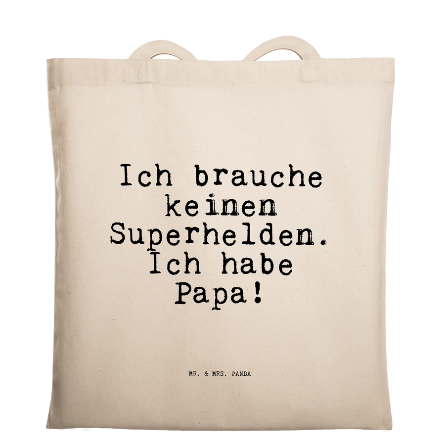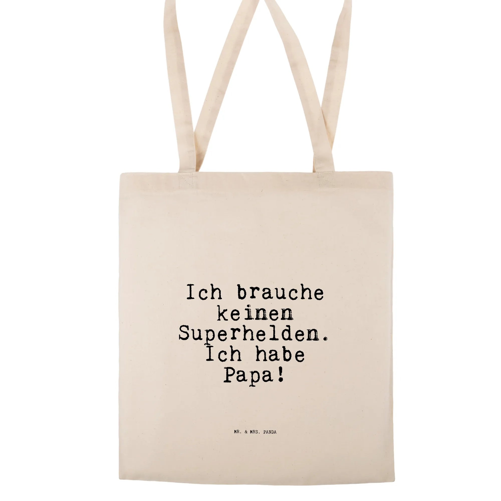 Suchst du ein perfektes Geschenk für deinen Papa? Unsere Tragetasche "Ich brauche keinen Superhelden. Ich habe Papa!" von Mr. & Mrs. Panda ist genau das richtige für Vatertag, Papas Geburtstag oder einfach nur um "Danke" zu sagen. Diese schöne Beuteltasche ist aus hochwertiger, naturbelassener Öko-Baumwolle hergestellt und besticht mit einem liebevollen Spruch, der das Herz jedes Vaters erfreut.