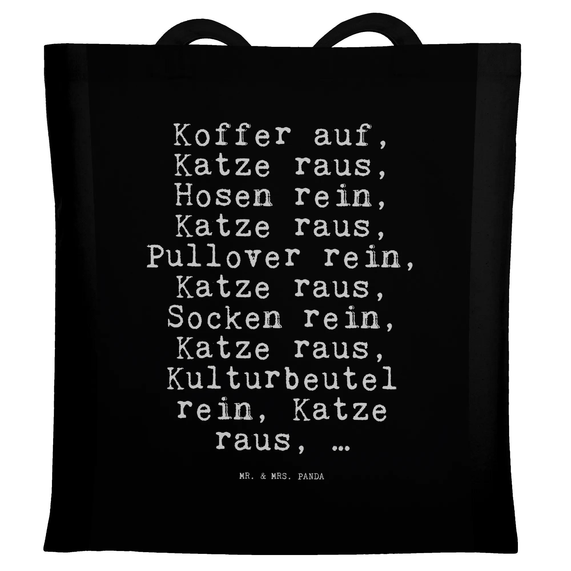 Entdecke unsere zauberhafte Tragetasche von Mr. & Mrs. Panda! Mit dem lustigen Spruch "Koffer auf, Katze raus, Hosen rein, Katze raus, Pullover rein, Katze raus, Socken rein, Katze raus, Kulturbeutel rein, Katze raus, ..." zaubert sie jedem ein Lächeln ins Gesicht. Egal, ob du zum Einkaufen, an den Strand oder auf eine Reise gehst, diese schicke Tragetasche aus 100% Baumwolle begleitet dich stilvoll.