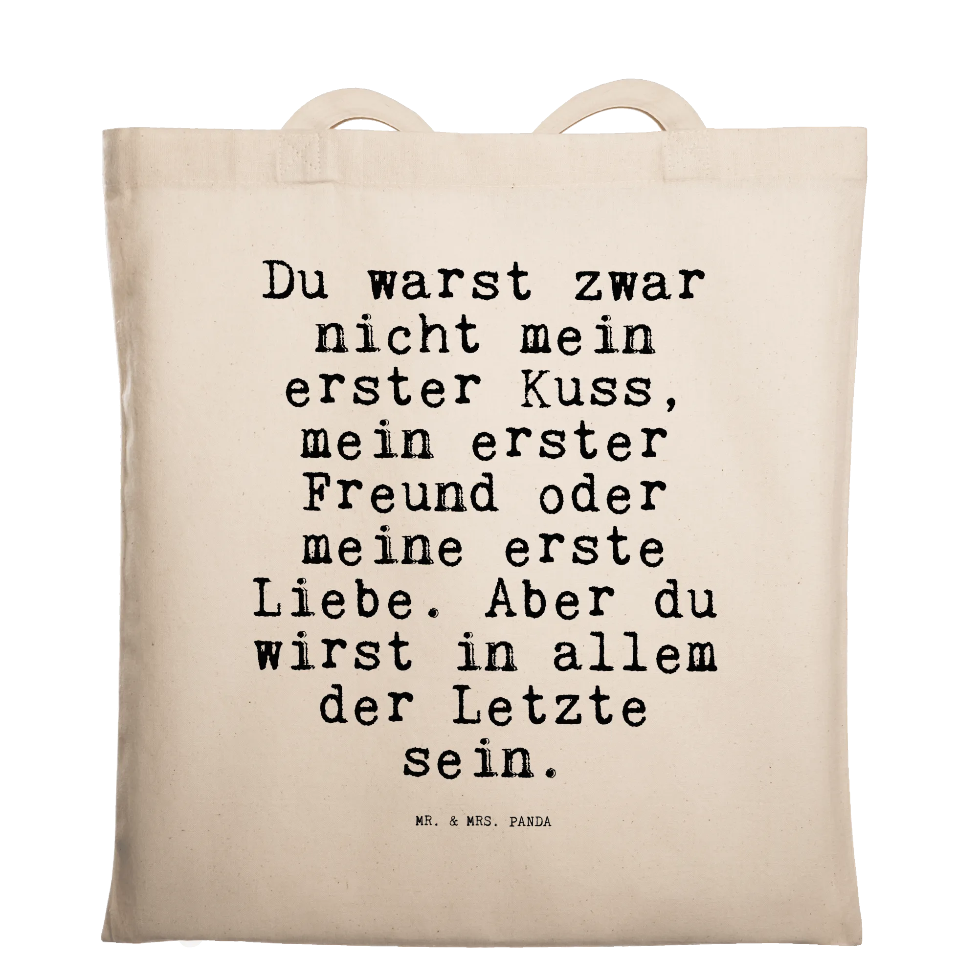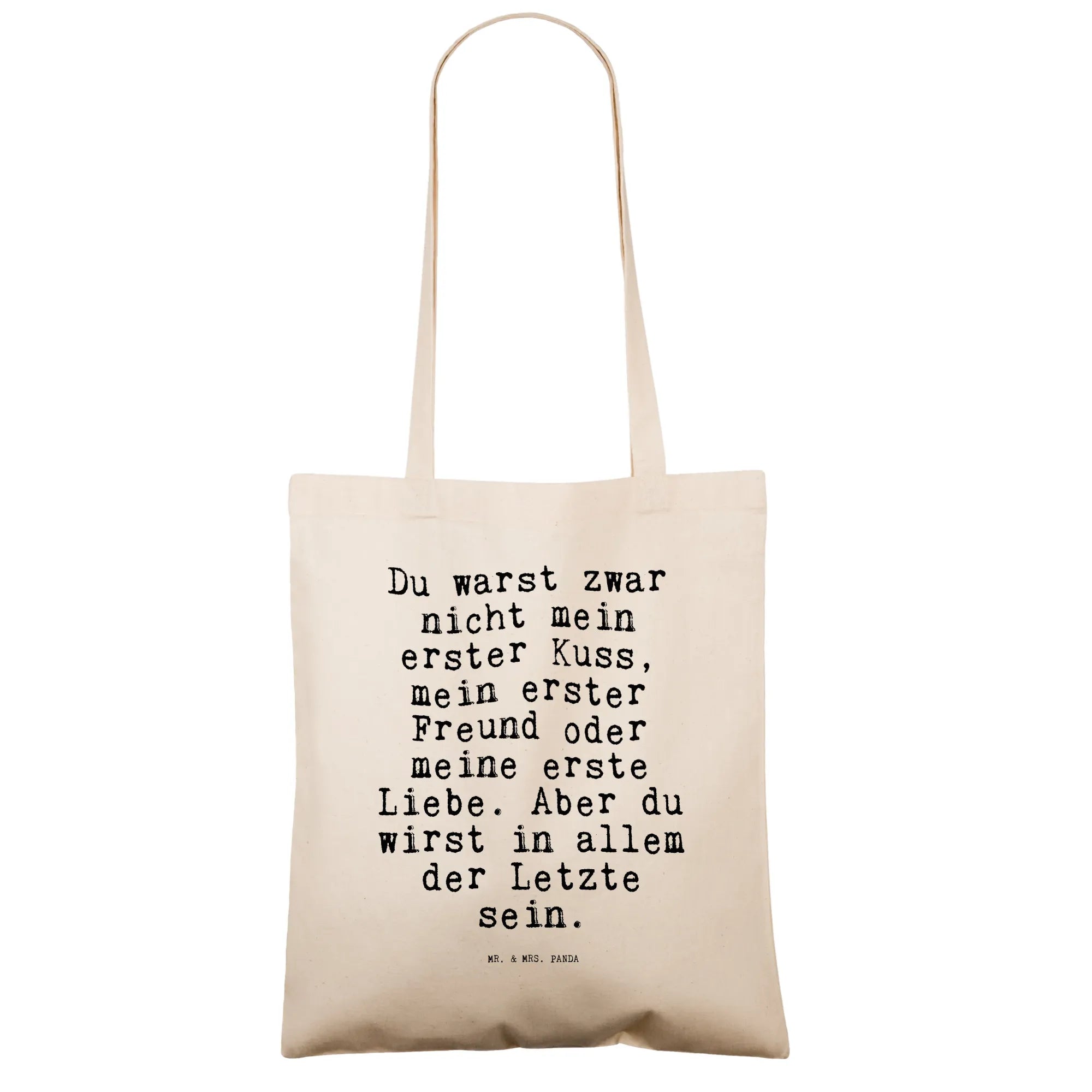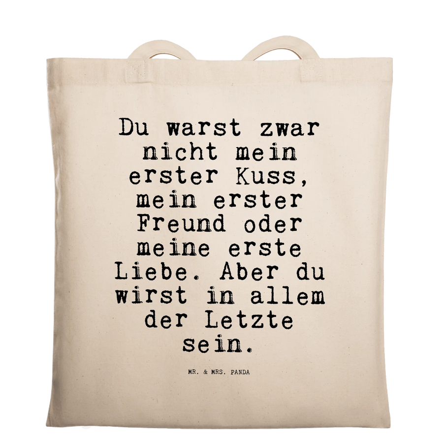Suchst Du ein liebevolles Accessoire, das Alltagstauglichkeit und Gefühl verbindet? Unsere Tragetasche mit dem Spruch „Du warst zwar nicht mein erster Kuss, mein erster Freund oder meine erste Liebe. Aber du wirst in allem der Letzte sein.“ ist genau das: ein praktischer Shopper und ein kleiner Liebesbrief für unterwegs.