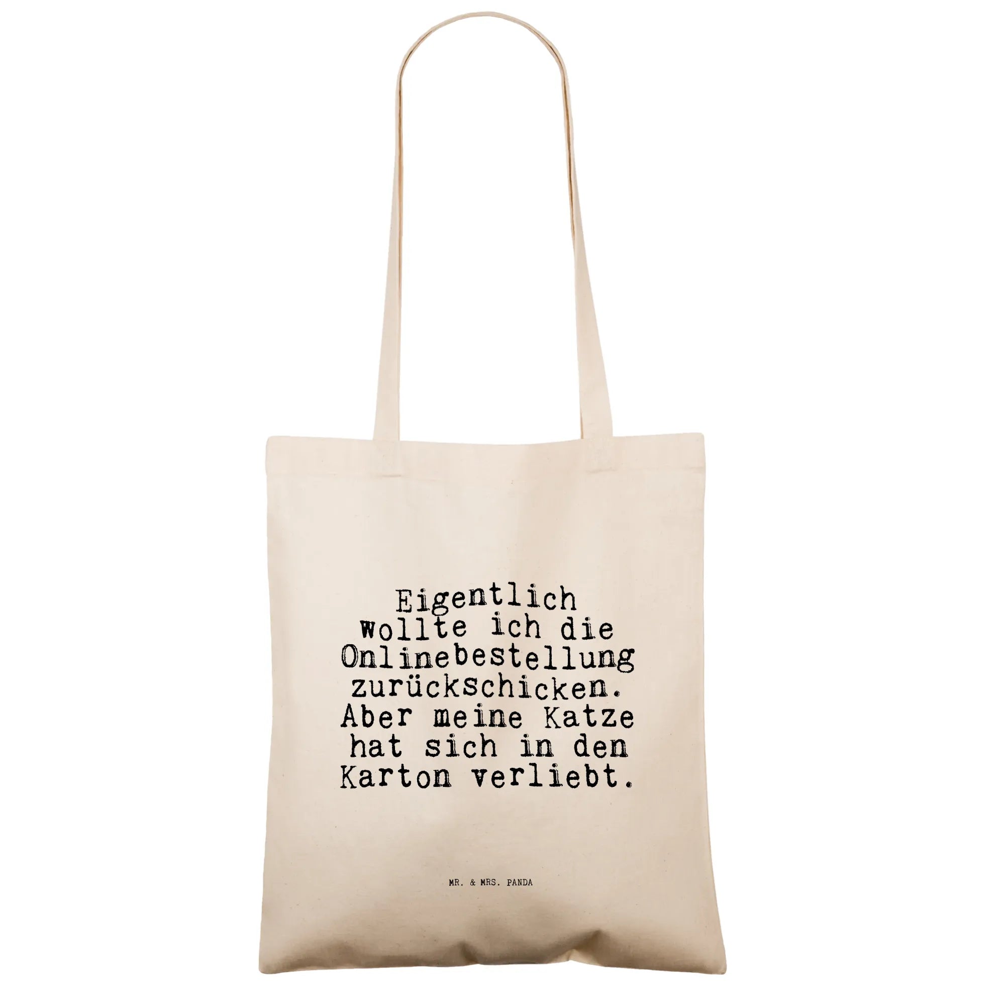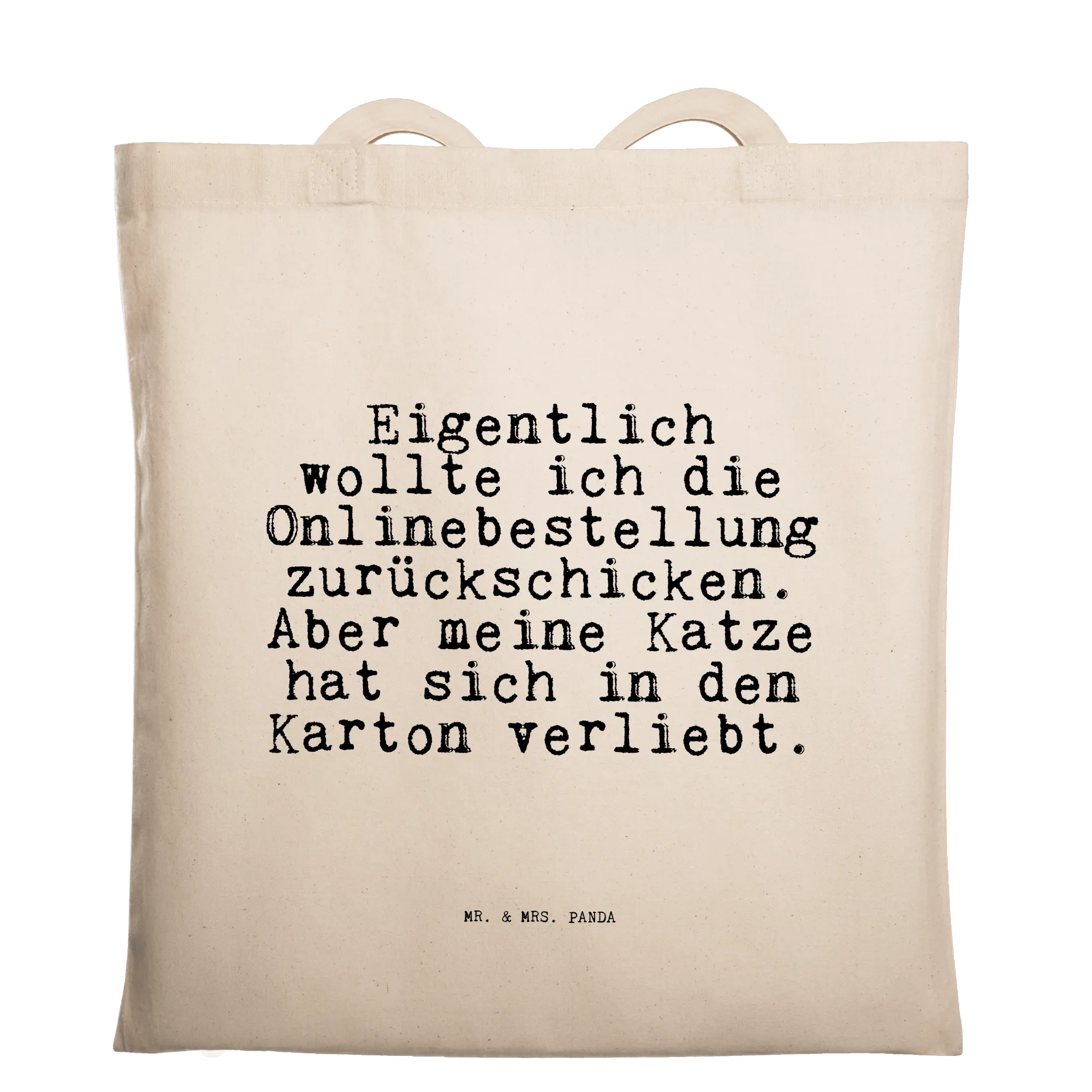 Tragetasche Sprüche und Zitate Eigentlich wollte ich die Onlinebestellung zurückschicken. Aber meine Katze hat sich in den Karton verliebt. - Transparent