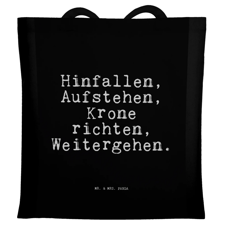 Tragetasche Sprüche und Zitate Hinfallen, Aufstehen, Krone richten, Weitergehen. - Schwarz