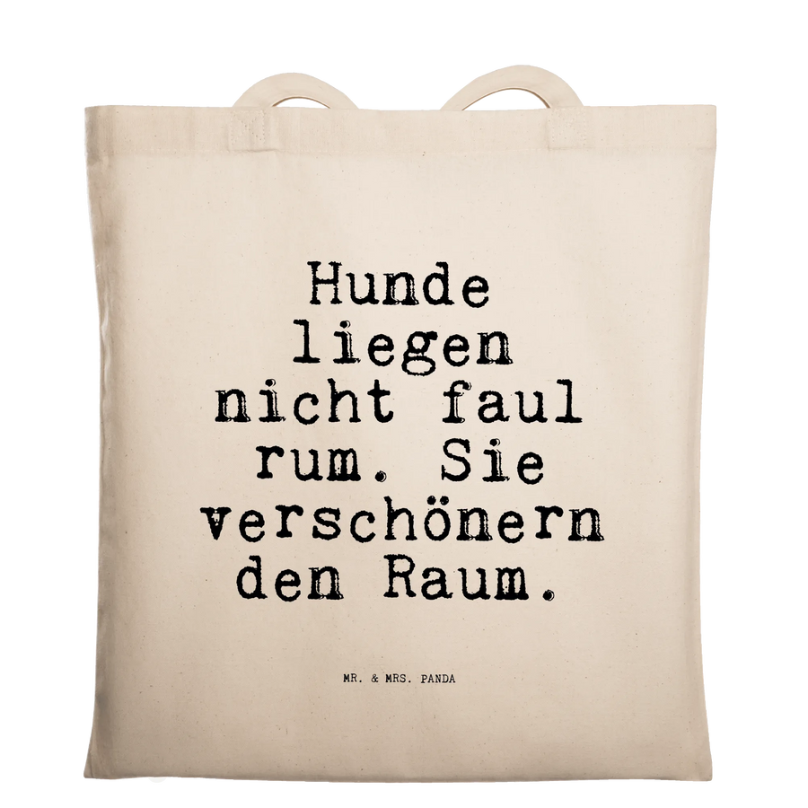 Suchst du ein Geschenk für Hundeliebhaber oder eine fröhliche Tasche für den Alltag? Unsere Tragetasche mit dem Spruch „Hunde liegen nicht faul rum. Sie verschönern den Raum.“ aus der Spruchreif-Kollektion von Mr. & Mrs. Panda vereint Witz, Wärme und Alltagstauglichkeit.