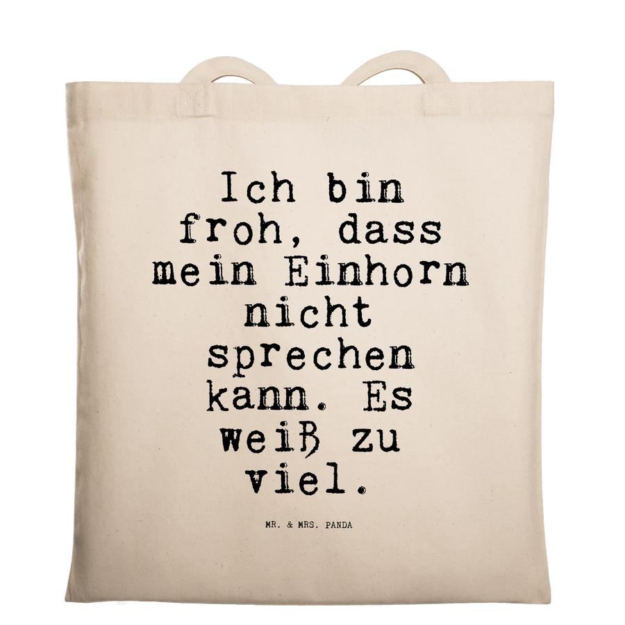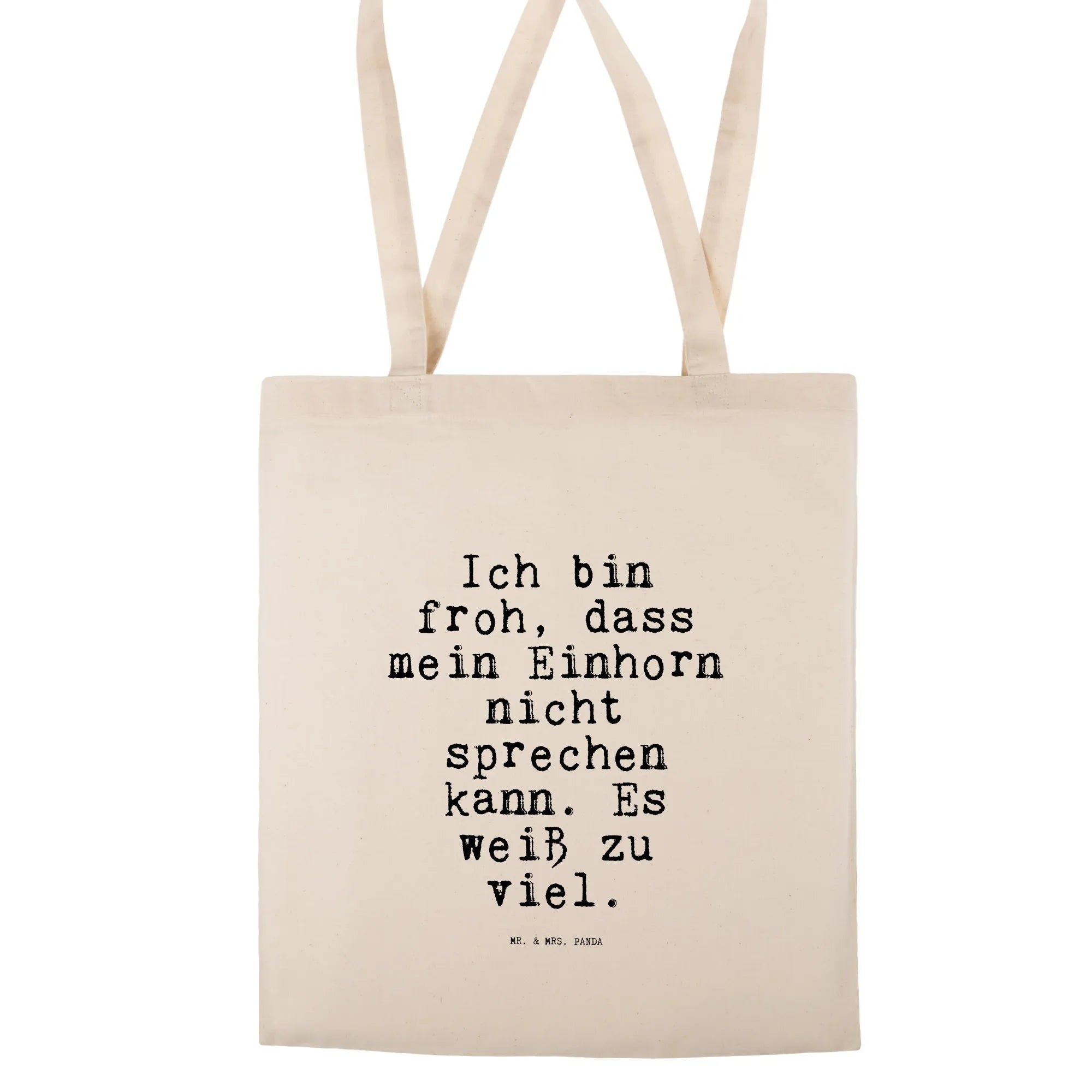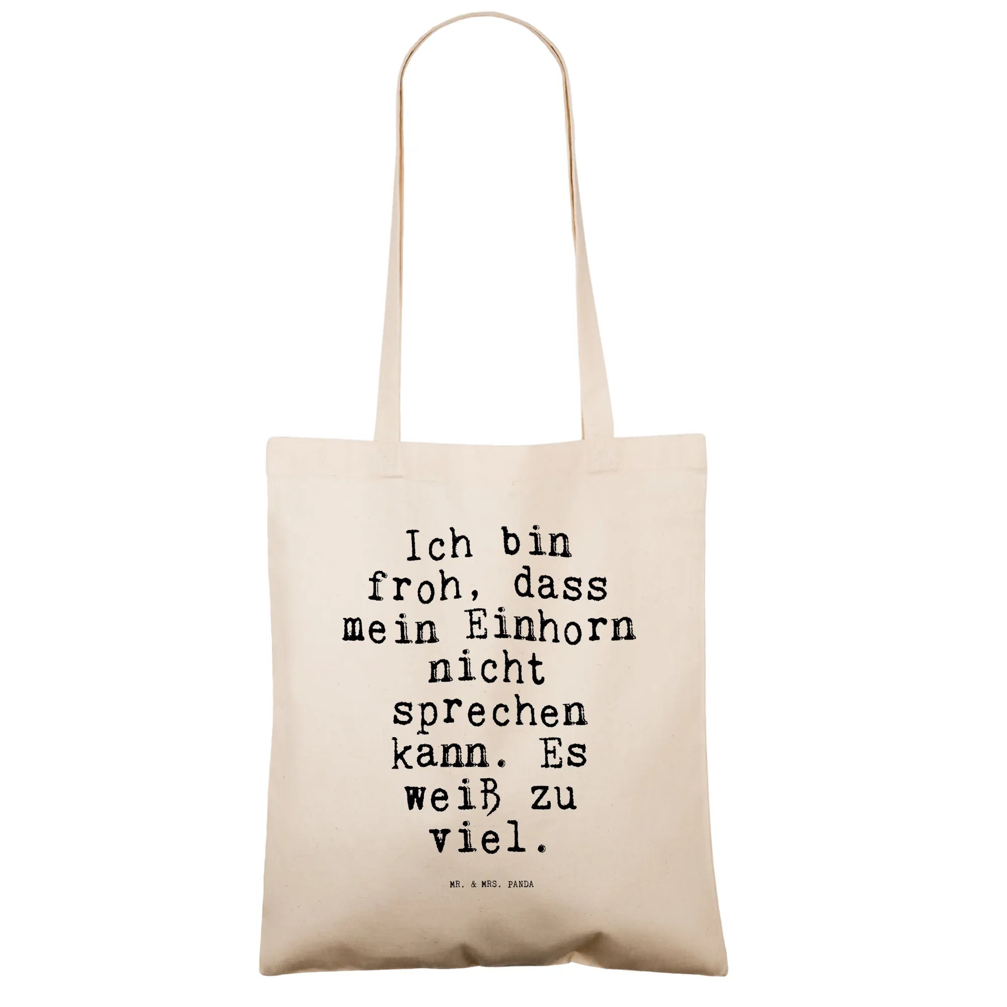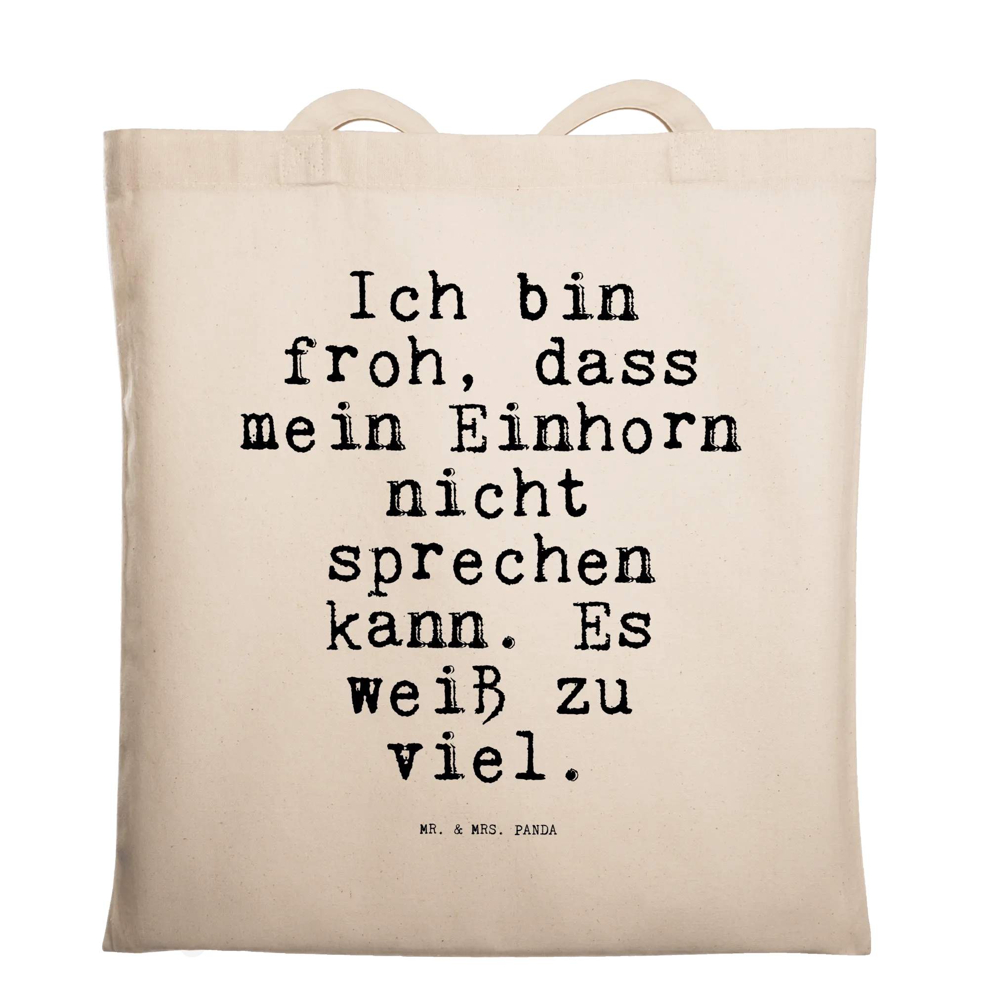 Tragetasche Sprüche und Zitate Ich bin froh, dass mein Einhorn nicht sprechen kann. Es weiß zu viel. - Transparent