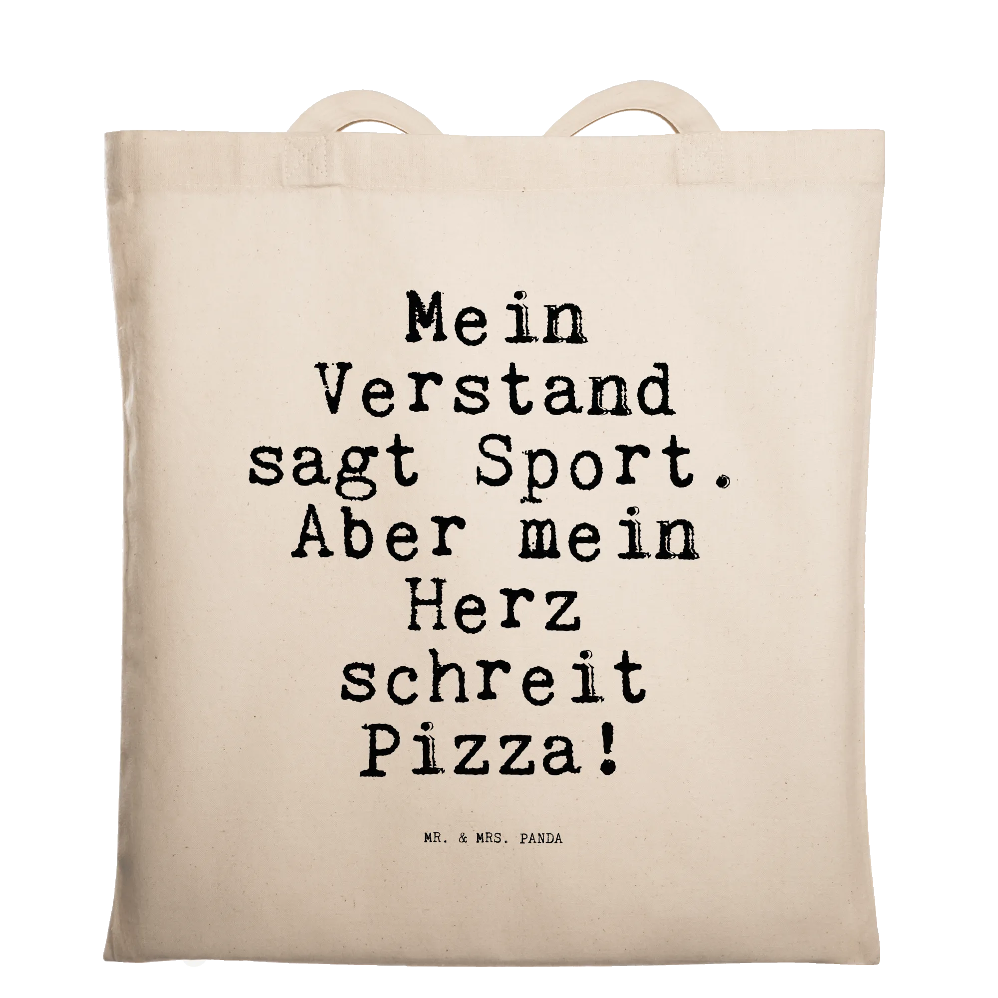 Tragetasche Sprüche und Zitate Mein Verstand sagt Sport. Aber mein Herz schreit Pizza! - Transparent