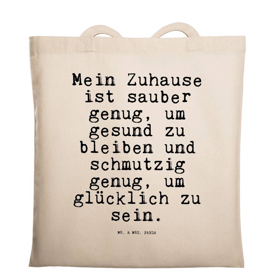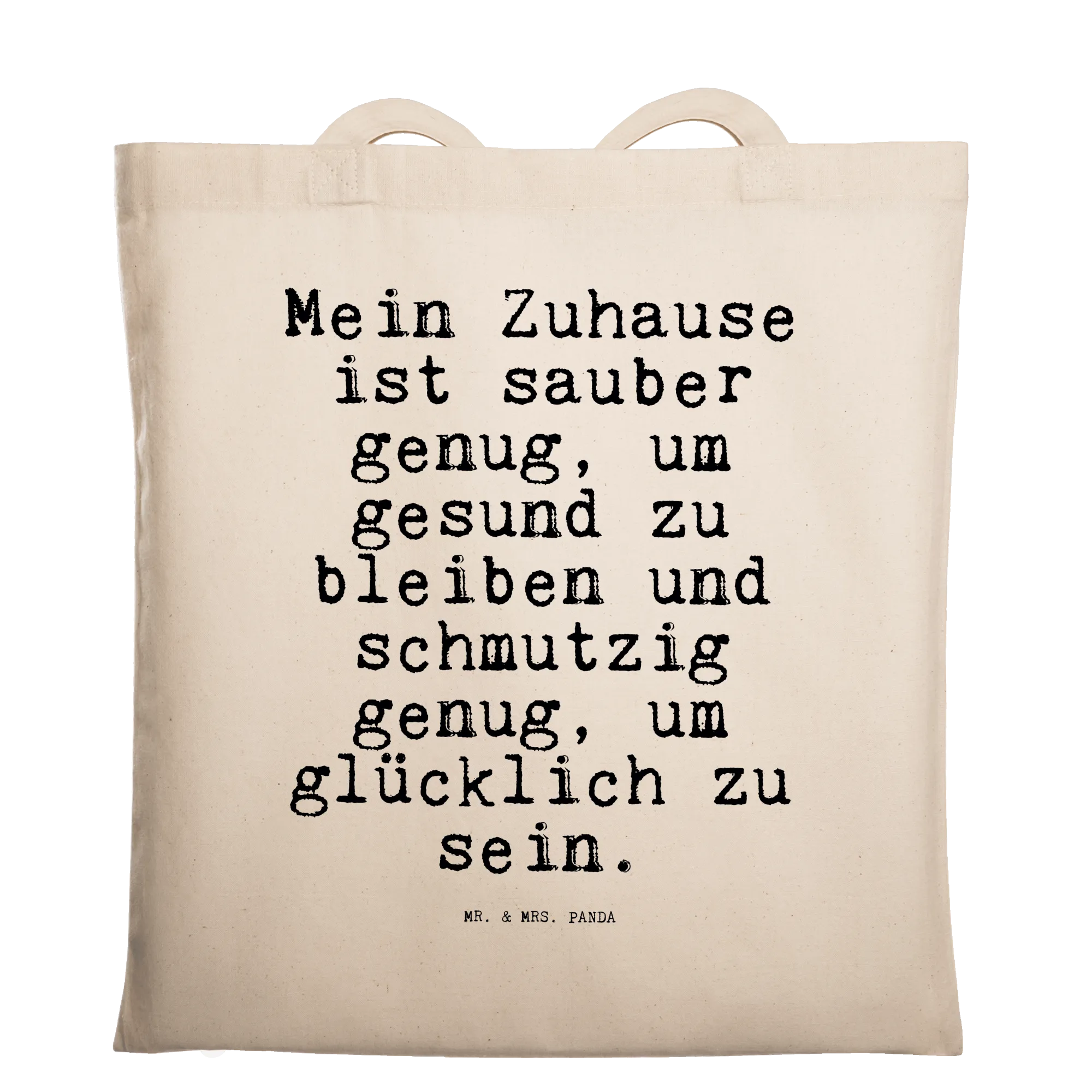 Tragetasche Sprüche und Zitate Mein Zuhause ist sauber genug, um gesund zu bleiben und schmutzig genug, um glücklich zu sein. - Transparent