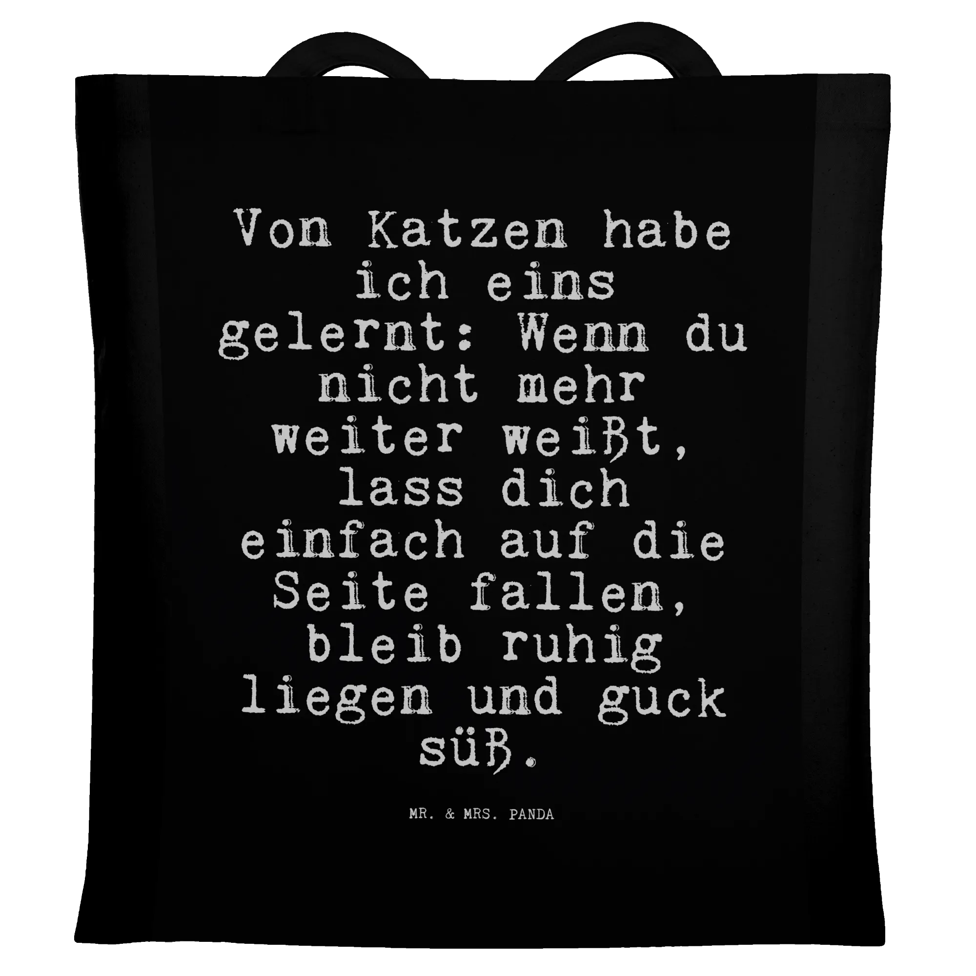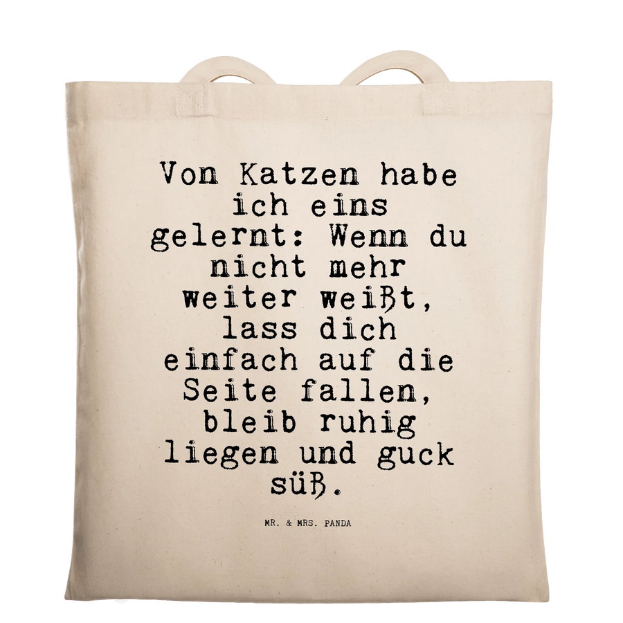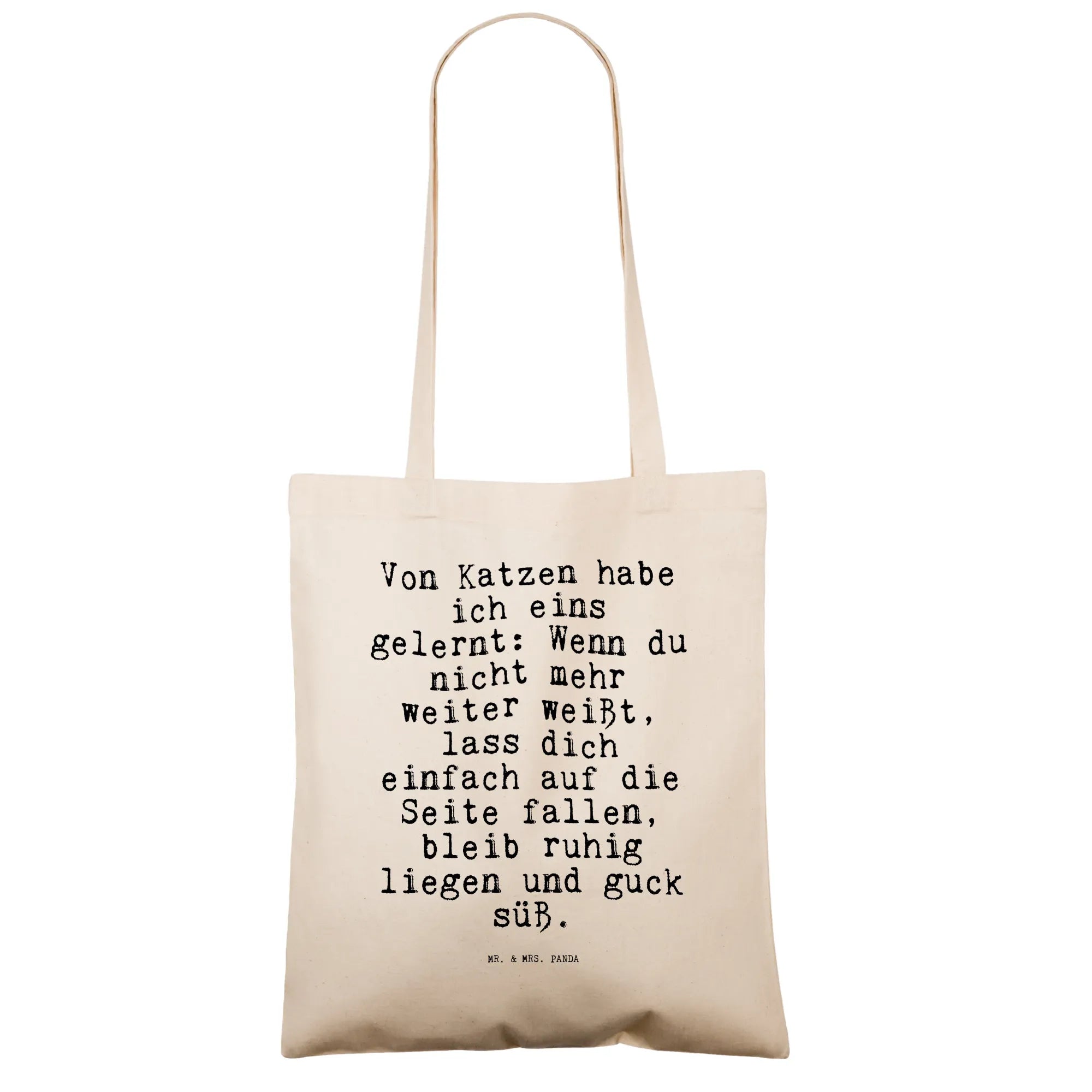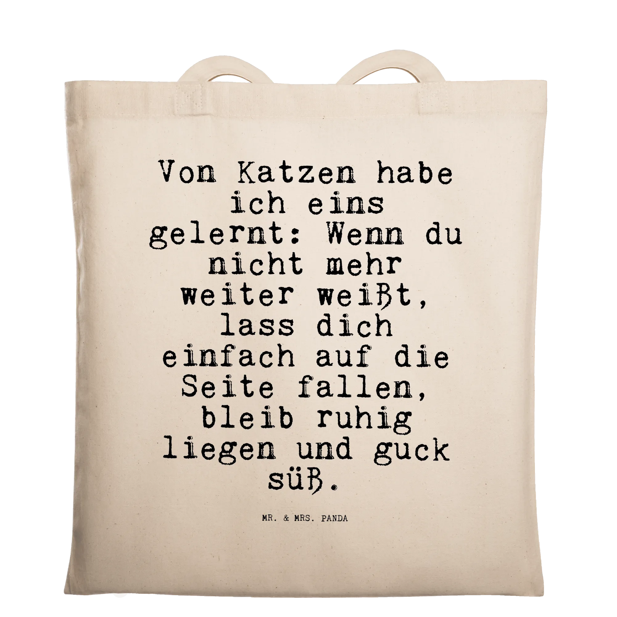 Suchst du das perfekte Geschenk für einen Katzenliebhaber oder vielleicht einfach für dich selbst? Dann ist die Tragetasche "Von Katzen habe ich eins gelernt: Wenn du nicht mehr weiter weißt, lass dich einfach auf die Seite fallen, bleib ruhig liegen und guck süß." von Mr. & Mrs. Panda genau das Richtige für dich!