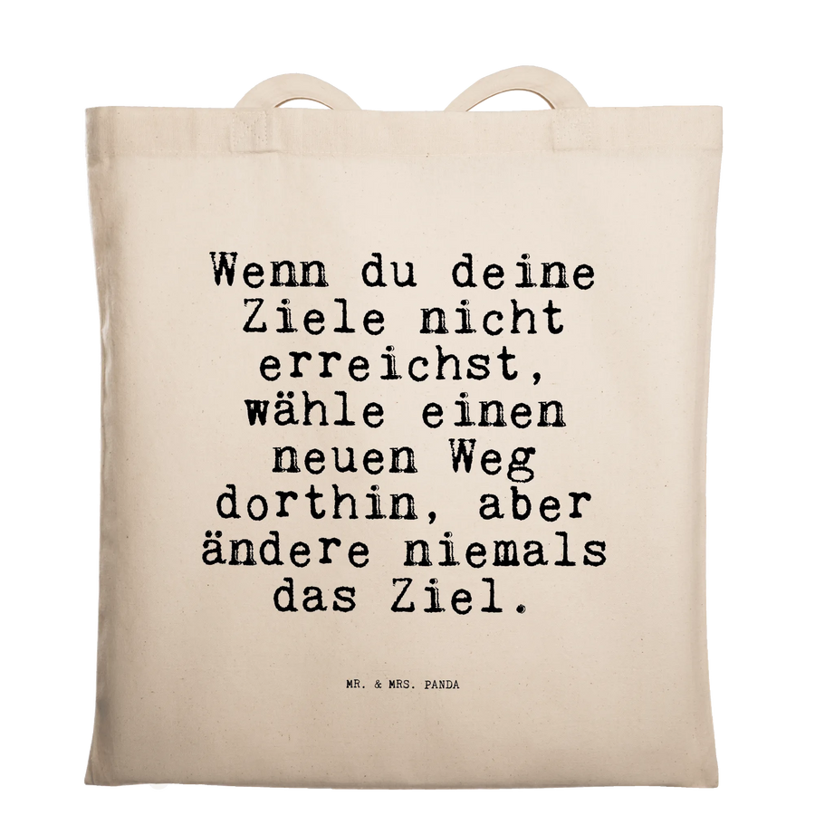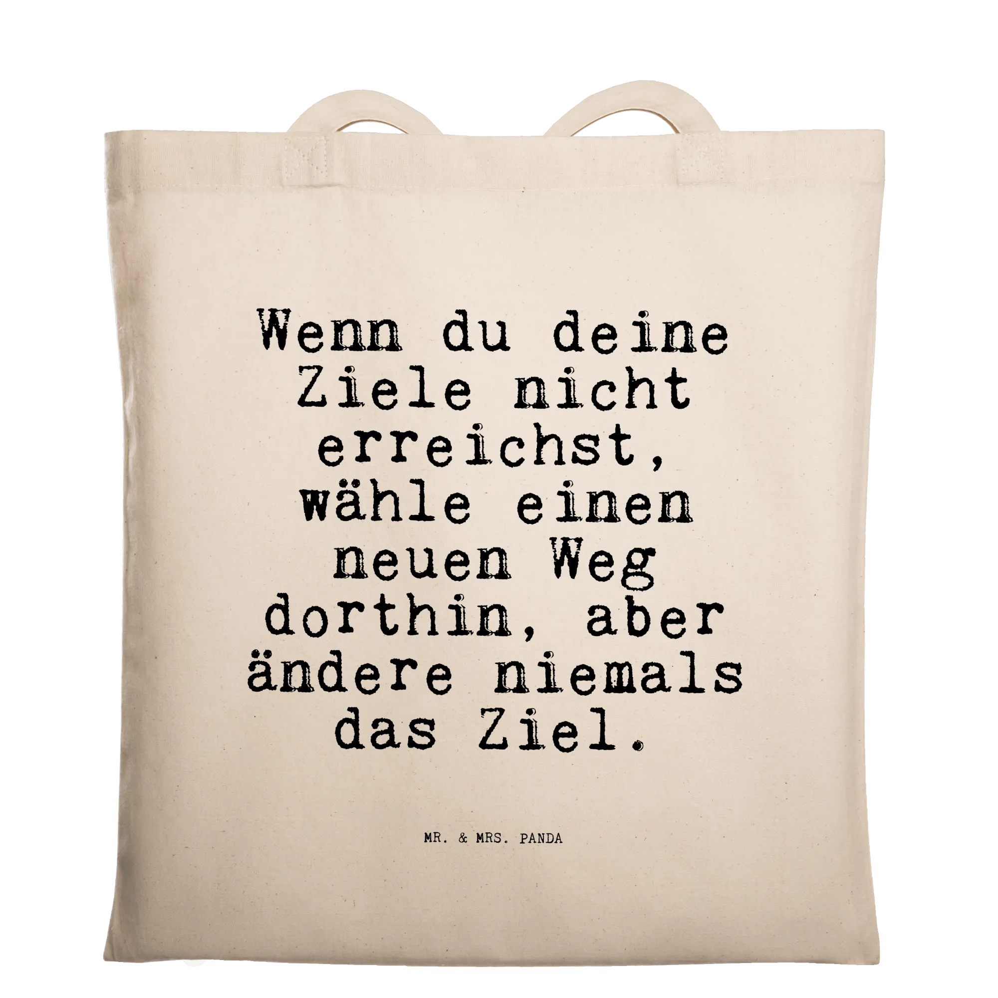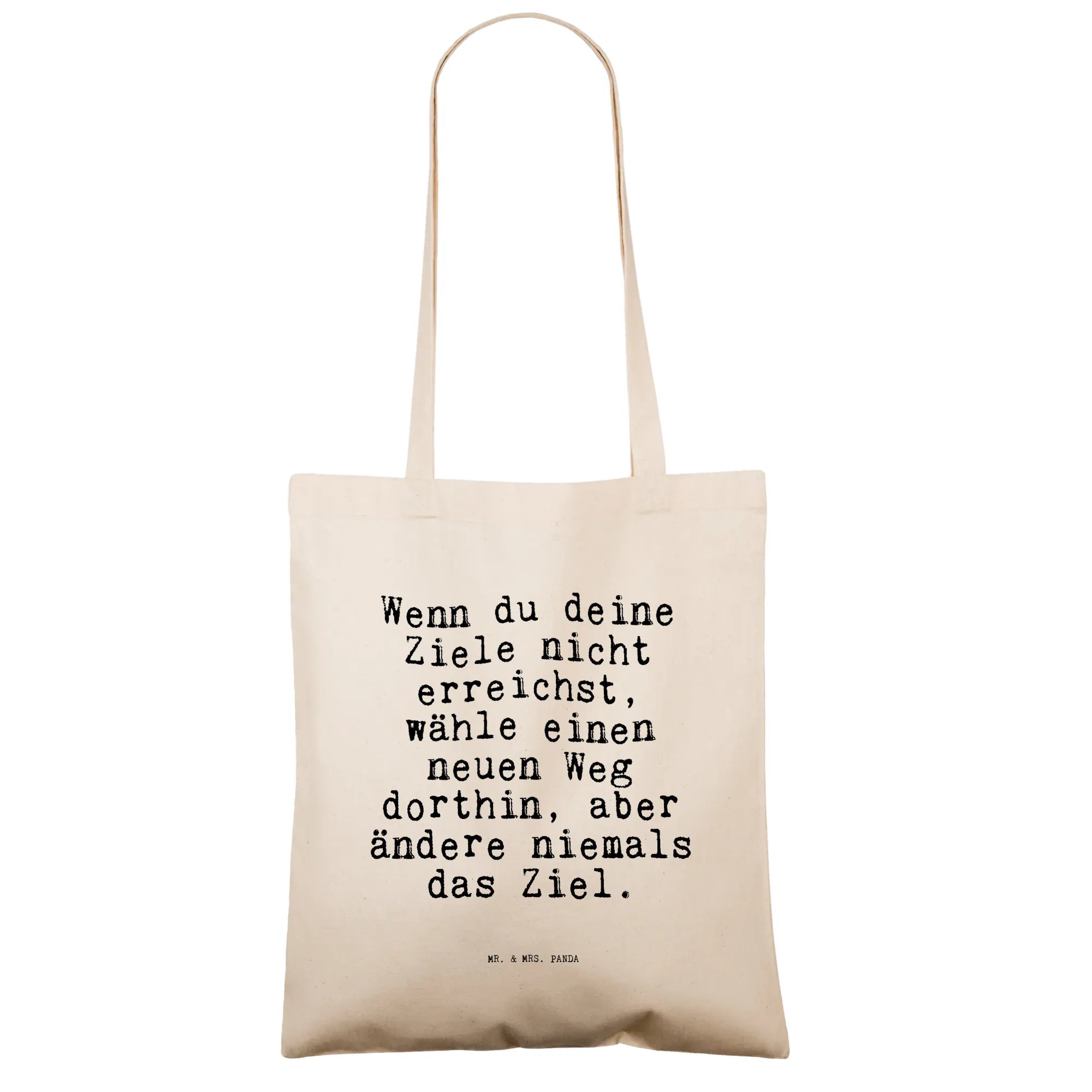 Eine wunderschöne Tragetasche von Mr. & Mrs. Panda – mit dem motivierenden Spruch „Wenn du deine Ziele nicht erreichst, wähle einen neuen Weg dorthin, aber ändere niemals das Ziel.“ Diese bedruckte Stofftasche verbindet Stil und Haltung und ist der perfekte Begleiter für Deinen Alltag.