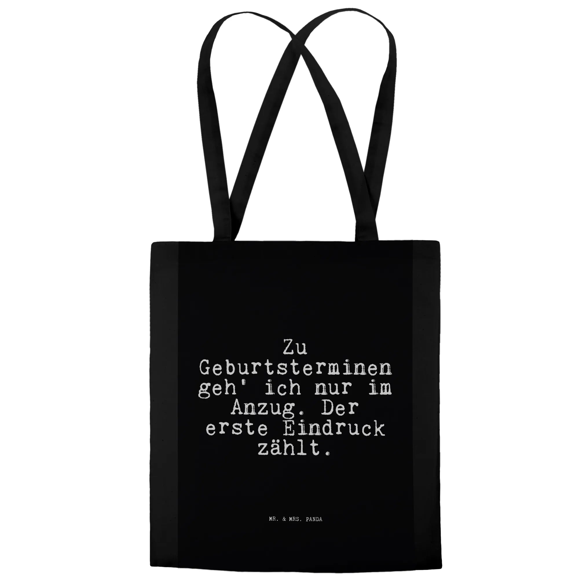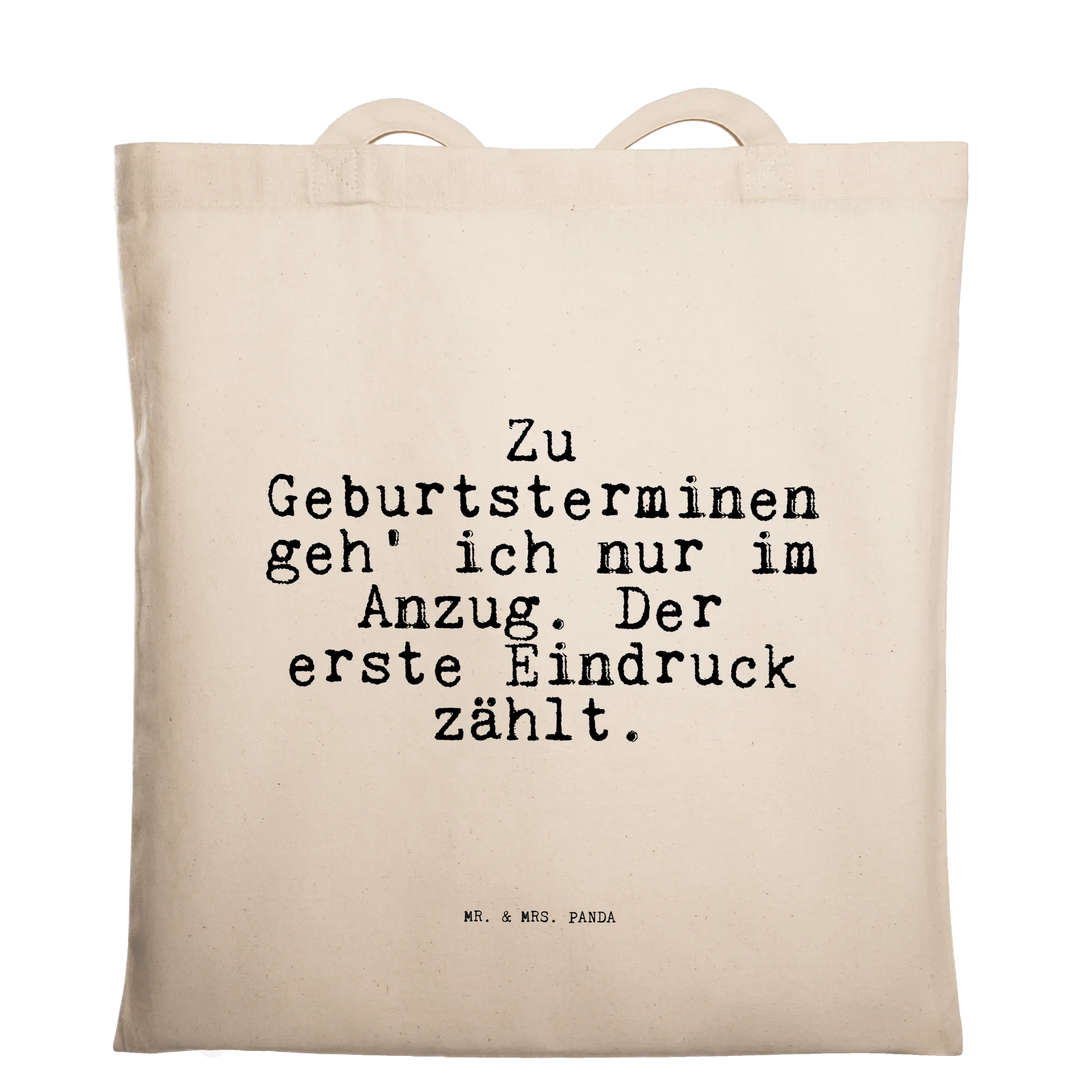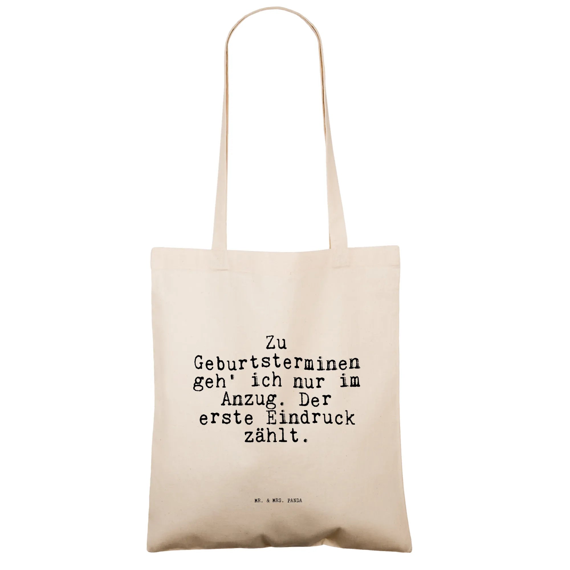 Tragetasche Sprüche und Zitate Zu Geburtsterminen geh' ich nur im Anzug. Der erste Eindruck zählt. - Transparent