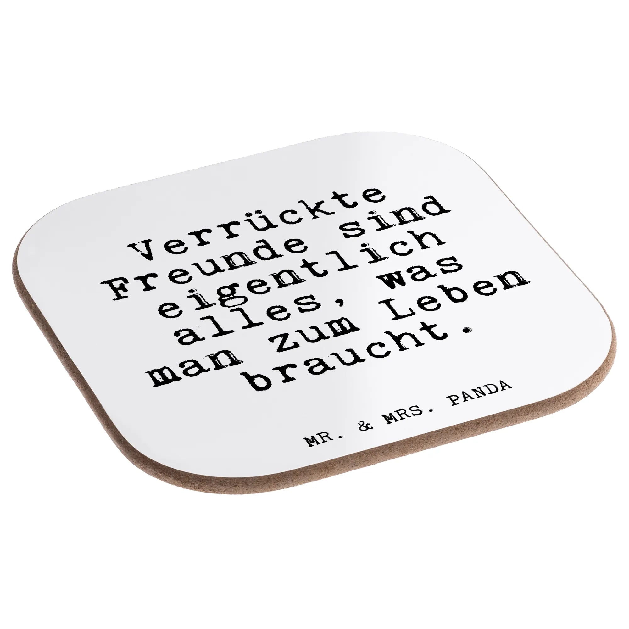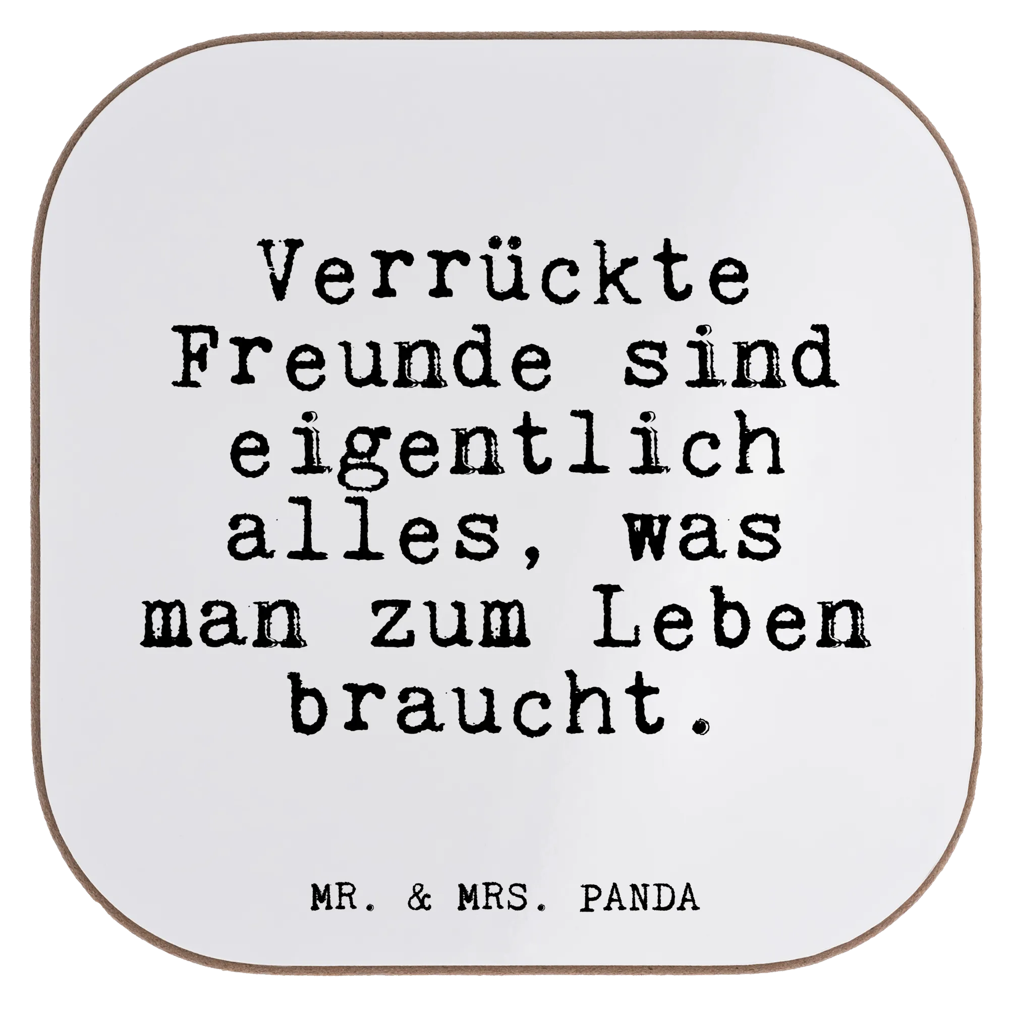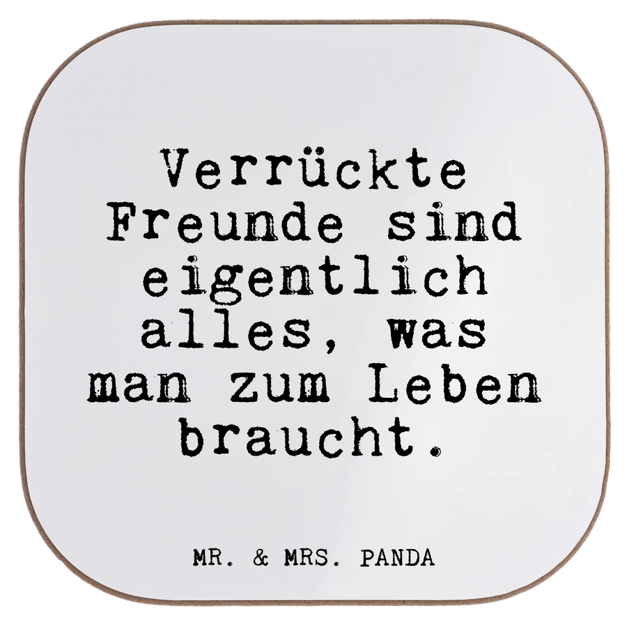 Der Untersetzer "Verrückte Freunde sind eigentlich alles, was man zum Leben braucht" von Mr. & Mrs. Panda ist das perfekte Geschenk für dich und deine Freunde! Ob bei einem gemütlichen Abend mit deiner besten Freundin, beim Grillen mit der Clique oder einfach nur beim Entspannen Zuhause – dieser hochwertige Untersetzer aus stabiler Hartfaser schützt deinen Tisch vor unschönen Abdrücken und Kratzern.
