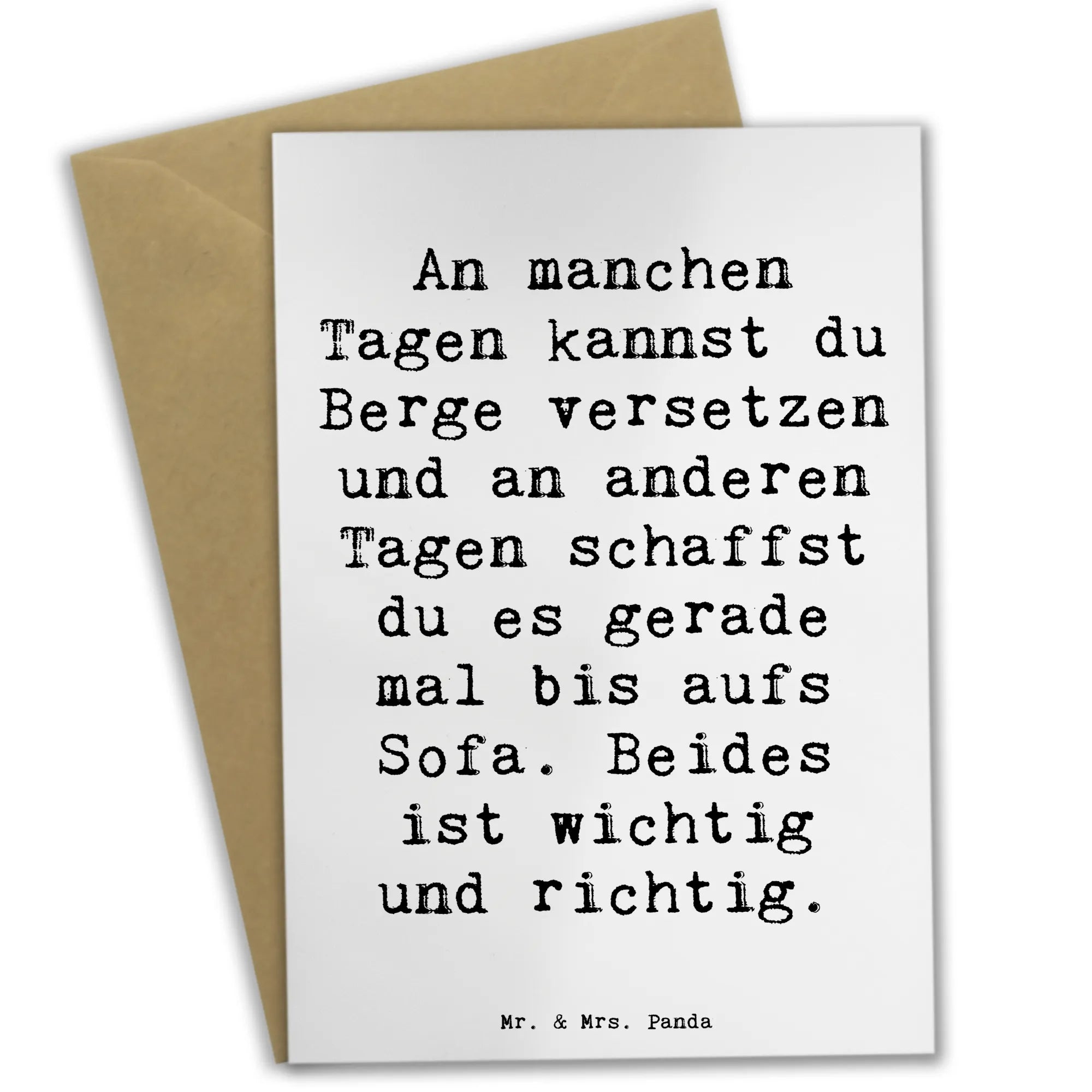 Überrasche jemanden mit einem handgeschriebenen Gruß und lass ihn wissen, dass du an ihn denkst! Die Botschaft "An manchen Tagen kannst du Berge versetzen und an anderen Tagen schaffst du es gerade mal bis aufs Sofa. Beides ist wichtig und richtig." spricht aus, was wir alle kennen und fühlen. Sie eignet sich hervorragend für feierliche Anlässe wie Geburtstage, Hochzeiten oder einfach als kleine Aufmunterung zwischendurch.
