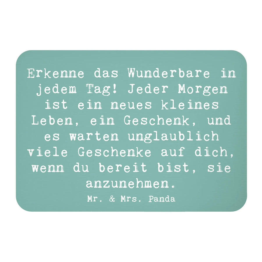 Der Spruch "Erkenne das Wunderbare in jedem Tag! Jeder Morgen ist ein neues kleines Leben, ein Geschenk, und es warten unglaublich viele Geschenke auf dich, wenn du bereit bist, sie anzunehmen." erinnert dich daran, dass jeder Tag neue Möglichkeiten bereit hält. Mit seinen farbenfrohen und bunten Designs bringt dieser Magnet Freude und Motivation in deine Küche oder dein Büro.
