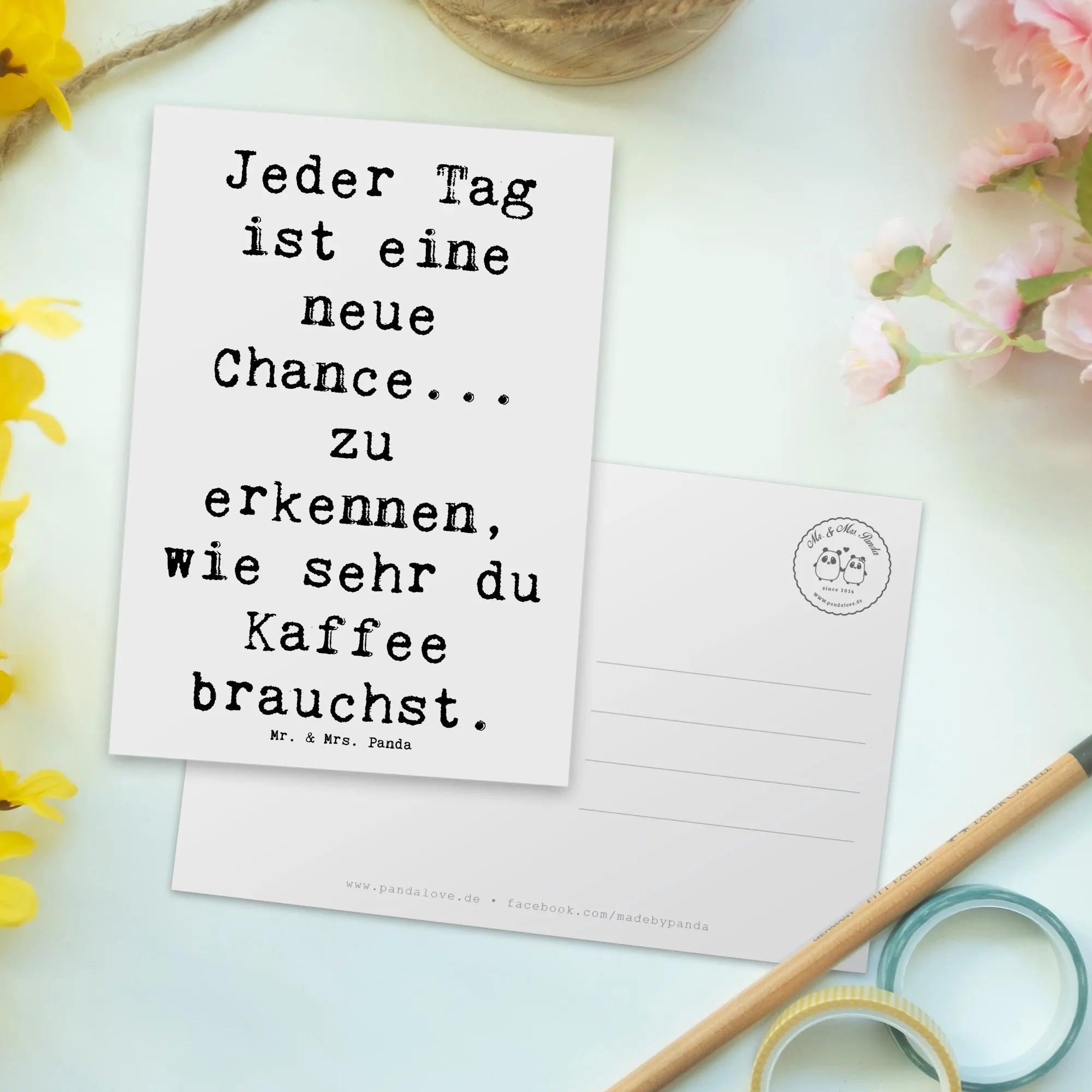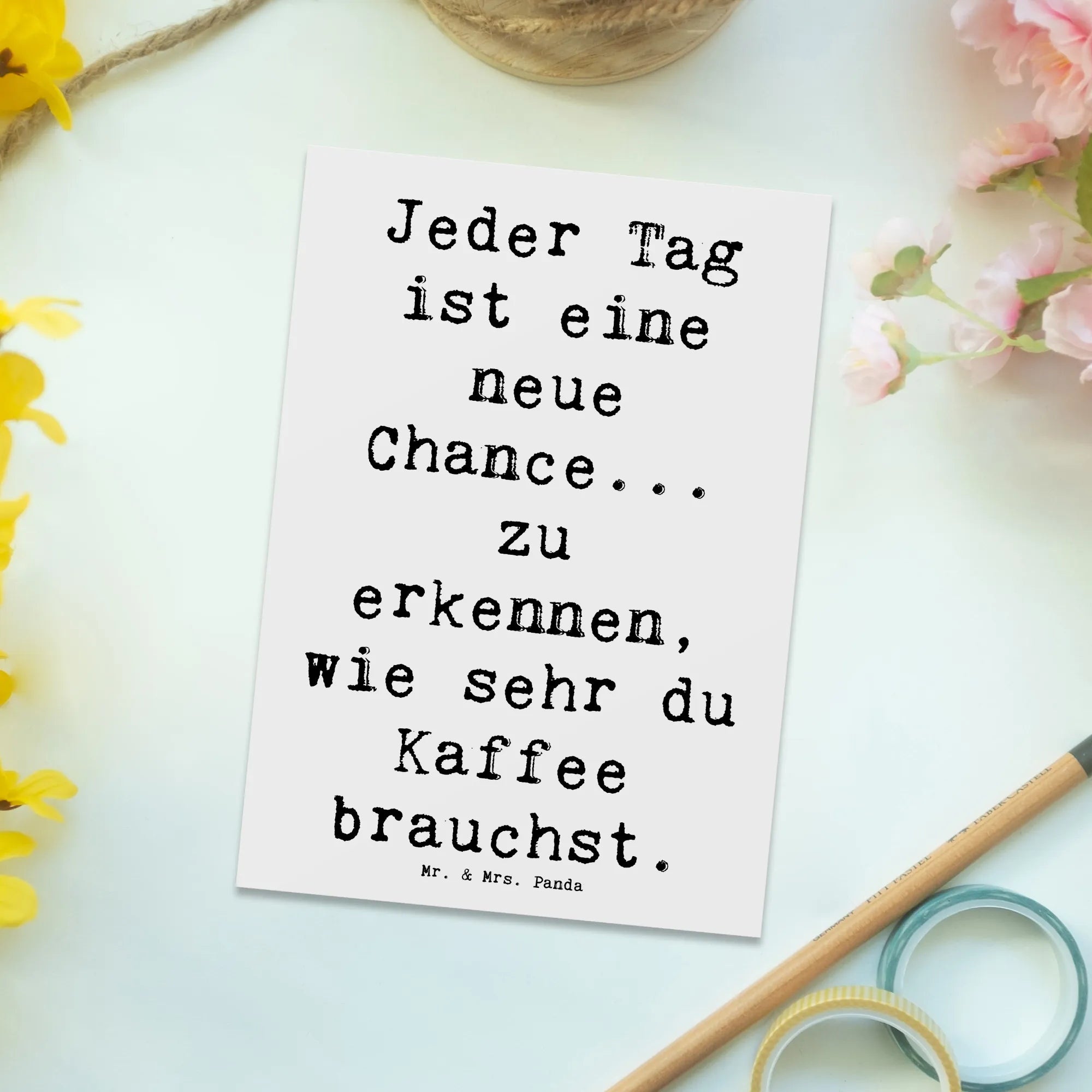 Suchst du das perfekte Geschenk für einen besonderen Anlass? Die Postkarte Motivation von Mr. & Mrs. Panda aus der liebevollen Kollektion Gefühle & Stimmungen ist genau das, was du brauchst! Mit dem witzigen Spruch „Jeder Tag ist eine neue Chance... zu erkennen, wie sehr du Kaffee brauchst“ zauberst du jedem ein Lächeln ins Gesicht.