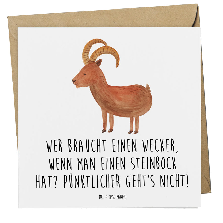 Die Deluxe Karte "Steinbock" von Mr. & Mrs. Panda ist das ideale Geschenk für alle Steinbock-Geborenen und Astrologie-Fans! Diese wunderschöne quadratische Karte ist nicht nur mit einem liebevoll gestalteten Motiv verziert, sondern auch mit dem witzigen Spruch: "Wer braucht einen Wecker, wenn man einen Steinbock hat? Pünktlicher geht's nicht!". Damit ist sie perfekt geeignet, um die positiven Eigenschaften des Steinbocks zu feiern!