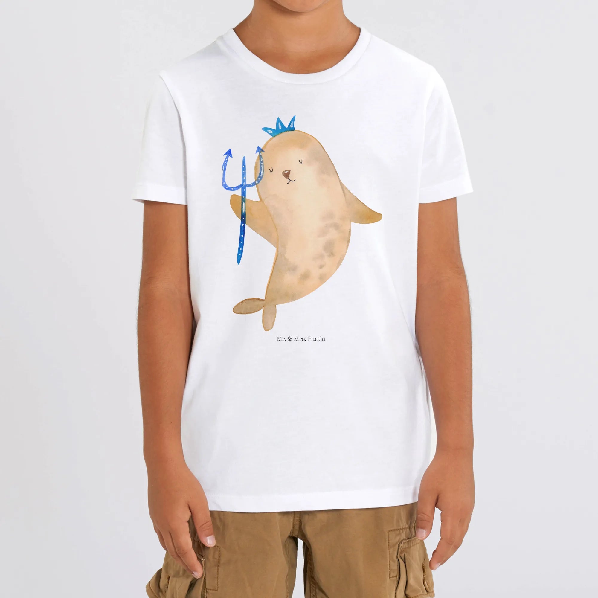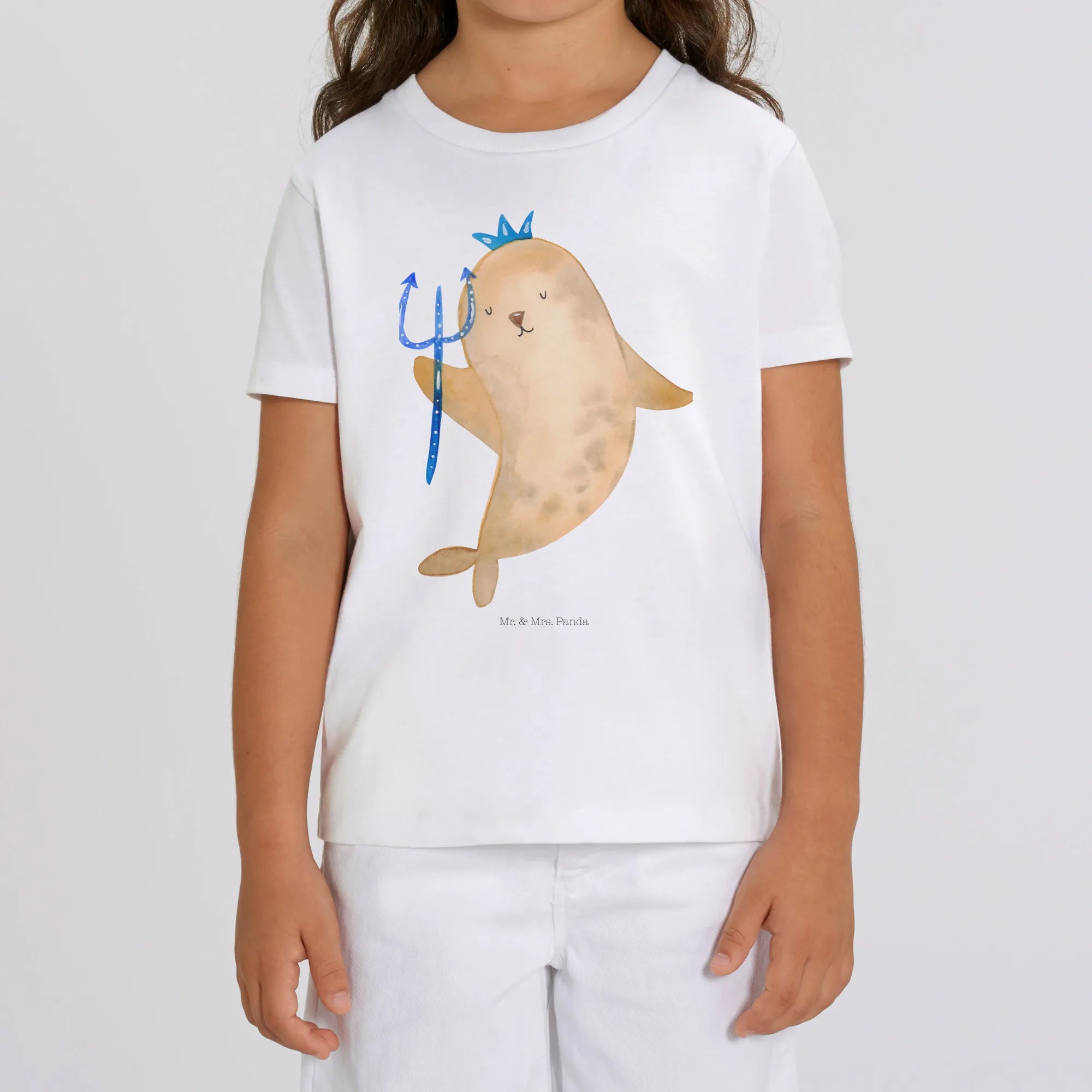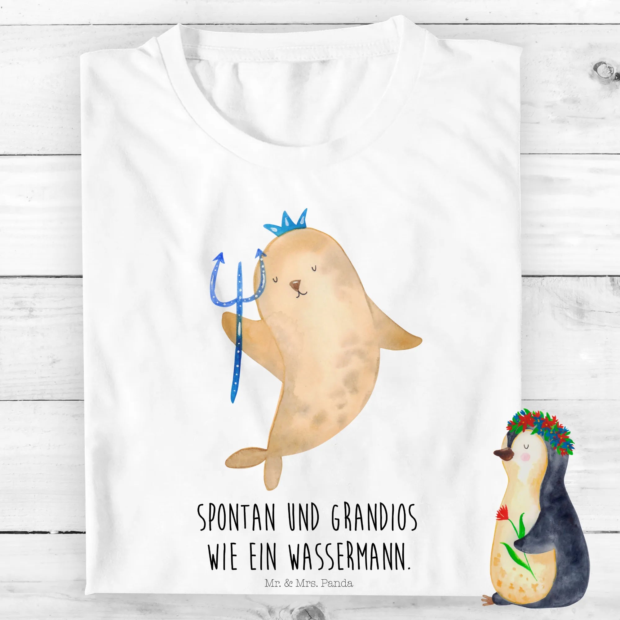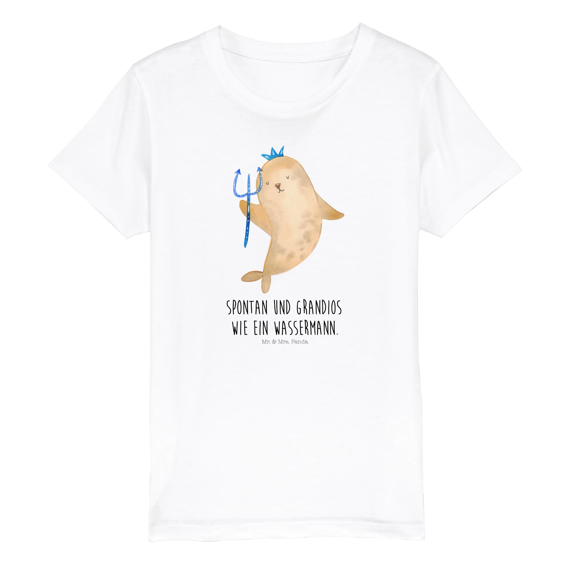 Das wunderschöne Kinder T-Shirt mit dem Tierkreiszeichen Wassermann von Mr. & Mrs. Panda ist das perfekte Geschenk für kleine Wassermänner und Wassermann-Fans! Mit dem fröhlichen und farbenfrohen Design einer Krone tragenden Robbe, die sich stilvoll mit einem Zepter präsentiert, strahlt dieses T-Shirt harmlosen Charme und Originalität aus.