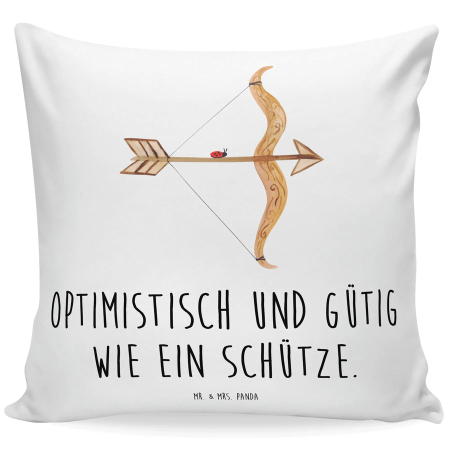 Das 40x40 Kissen mit dem zauberhaften Motiv des Sternzeichens Schütze von Mr. & Mrs. Panda ist das perfekte Geschenk für alle, die im November oder Dezember Geburtstag haben oder für die, die das Schützenfest feiern! Dieses hübsche Dekokissen begeistert nicht nur durch sein superfluschiges Mikrofaser-Material, sondern auch durch den romantischen Spruch 'Optimistisch und gütig wie ein Schütze', der das Kissen zu einem ganz besonderen Schmuckstück in deinem Zuhause macht.