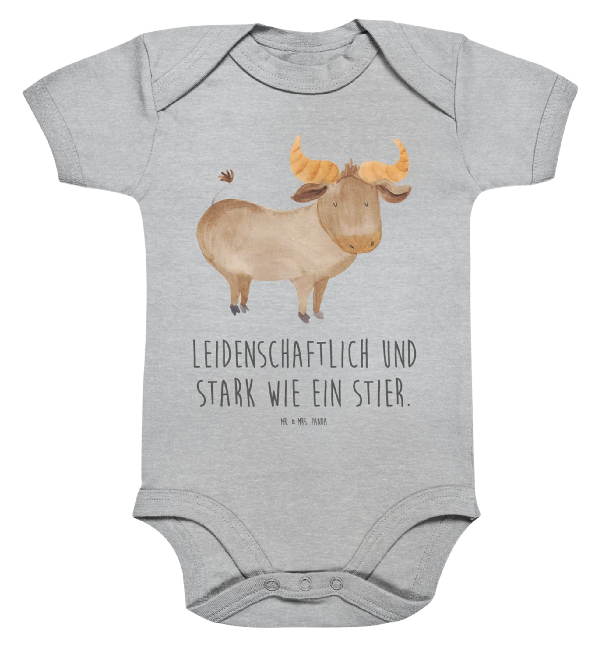 Die tierisch süßen Motive von Mr. & Mrs. Panda sind handgezeichnet und fangen die magischen Eigenschaften des Sternzeichens Stier auf charmante Weise ein. Die Kombination aus niedlichem Design und einem bedeutungsvollen Motiv macht diesen Strampler zu einem unvergesslichen Geschenk, das auch für viele süße Fotos sorgt.