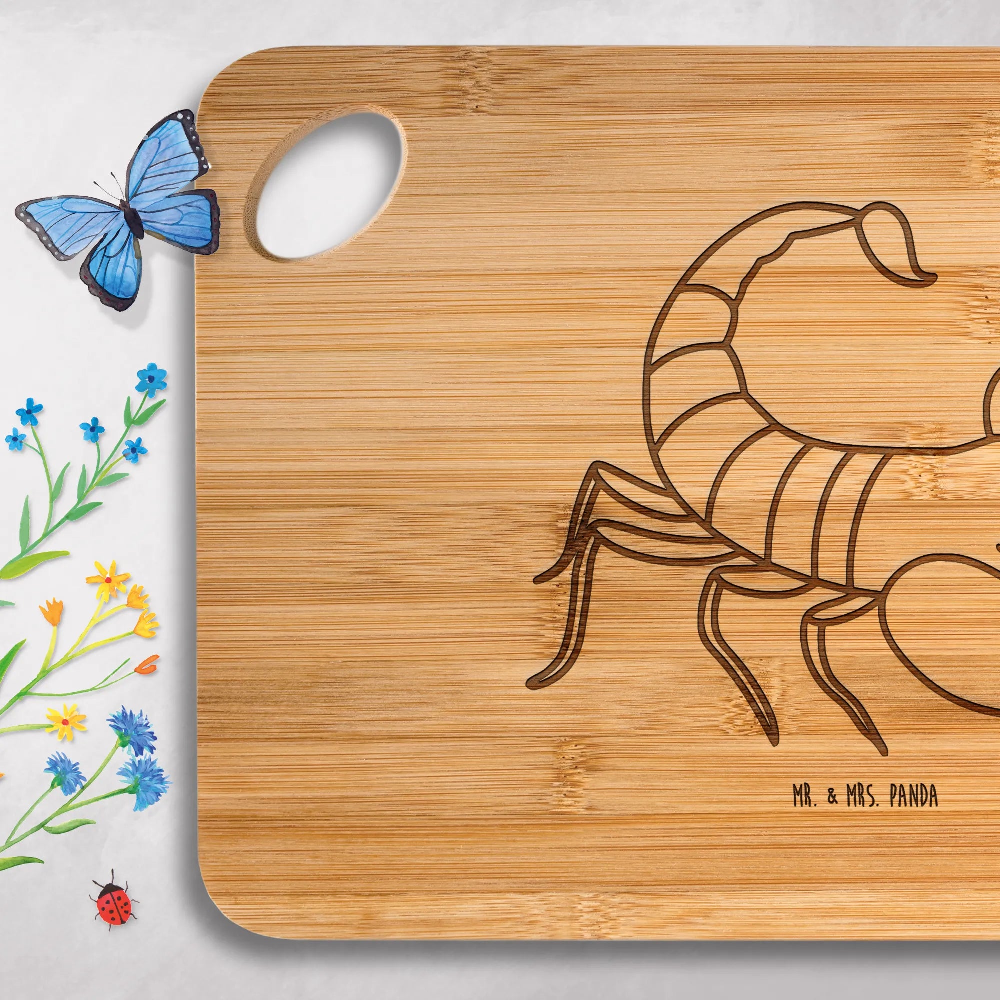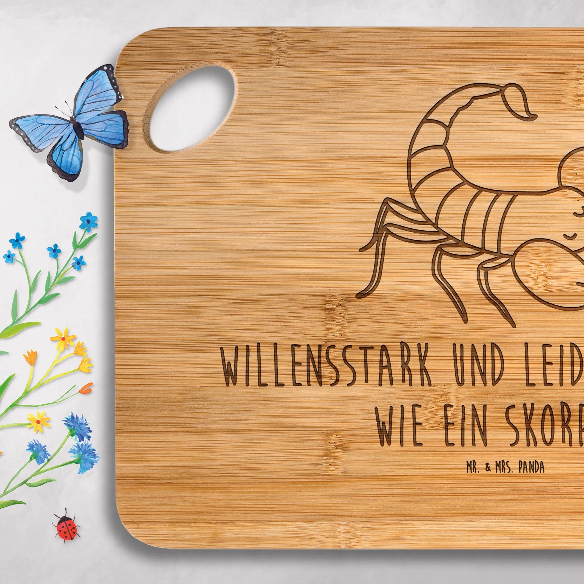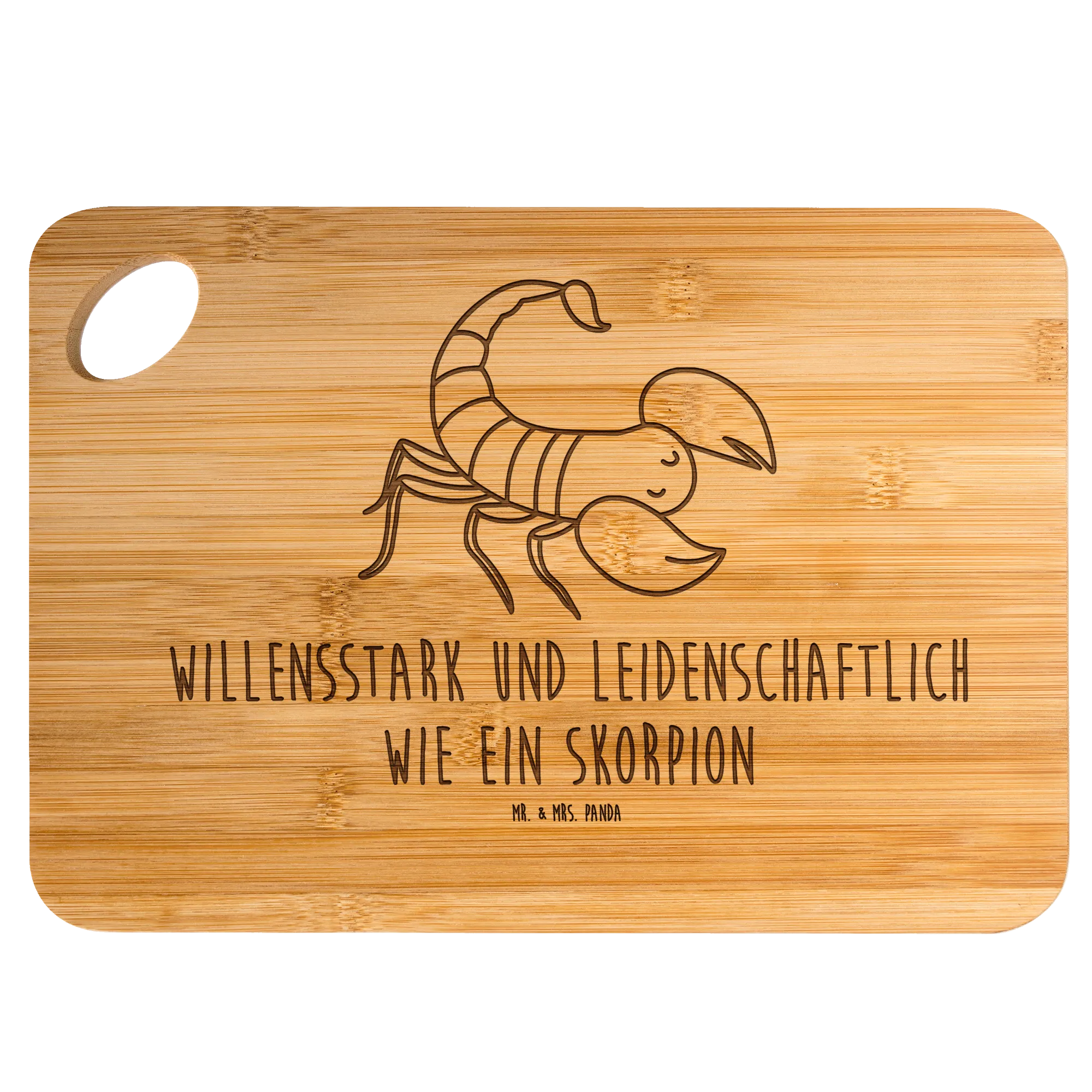 Ein liebevolles Geschenk für Skorpione und Sternzeichen-Fans: Unser Schneidebrett Sternzeichen Skorpion von Mr. & Mrs. Panda verbindet niedliches Design mit praktischer Funktion. Das handgezeichnete Motiv zeigt einen süßen Skorpion und trägt den Spruch „Willensstark und leidenschaftlich wie ein Skorpion“ – perfekt für Geburtstage im Oktober und November oder einfach als Aufmerksam-keit für einen besonderen Menschen.