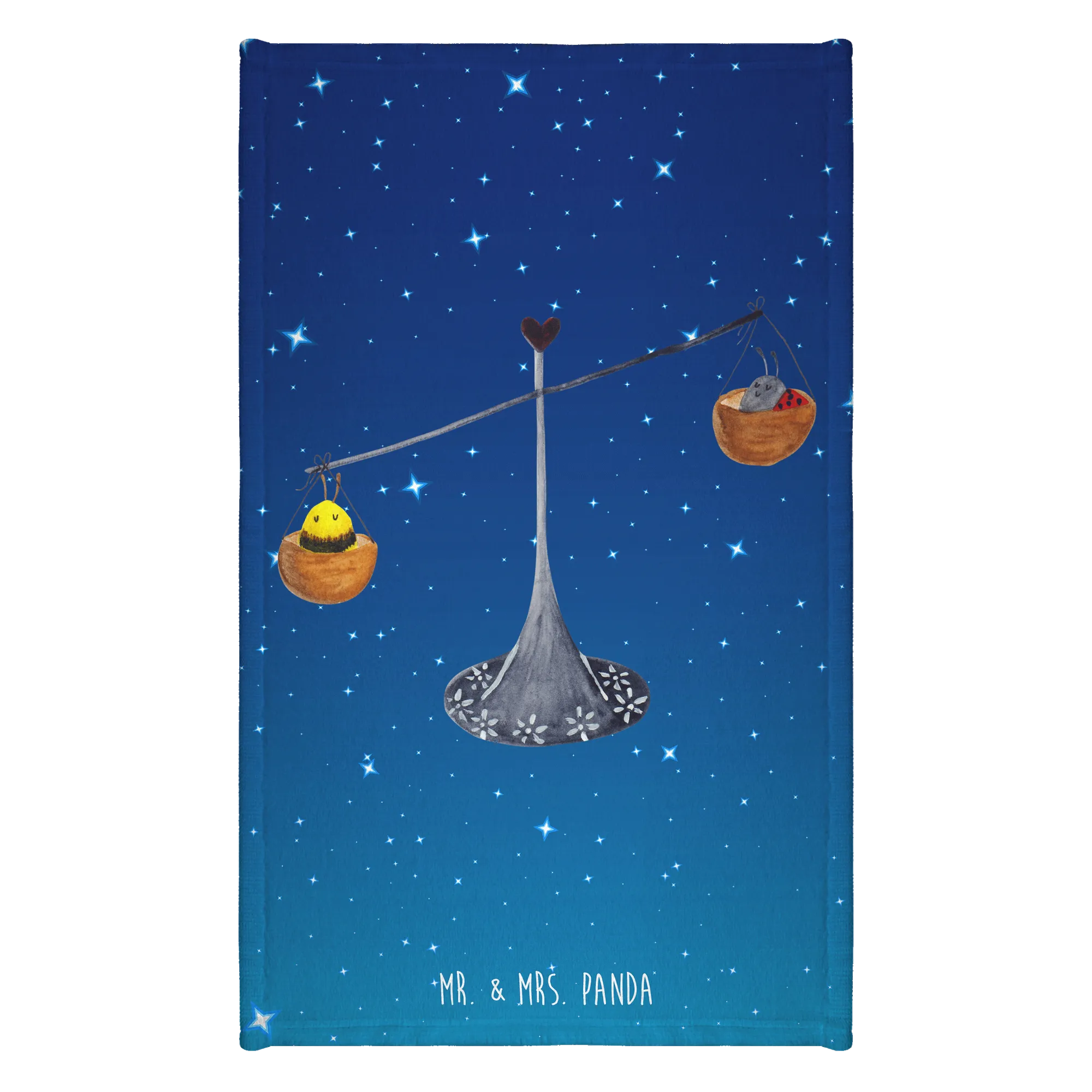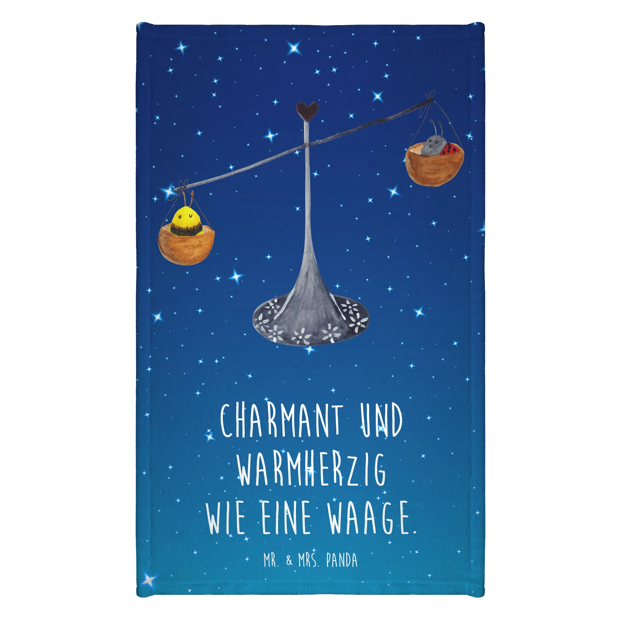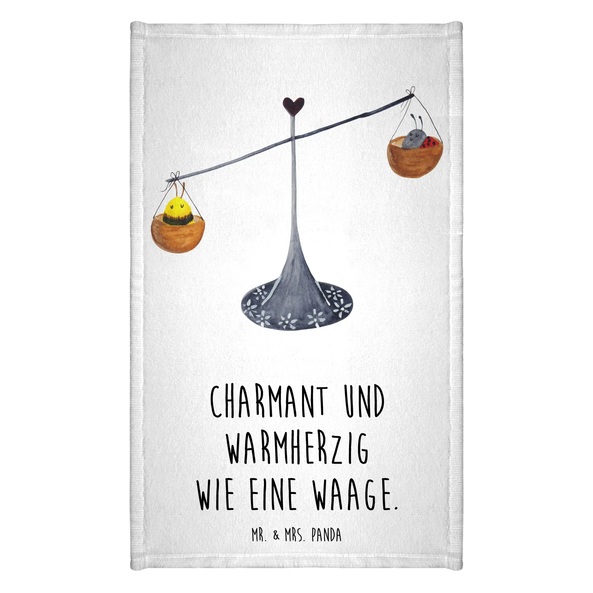 Das Gästehandtuch Sternzeichen Waage von Mr. & Mrs. Panda ist das perfekte Geschenk für alle, die im Oktober und September geboren sind oder die Waage lieben! Mit einer Größe von 300 mm x 500 mm ist es nicht nur handlich und praktisch, sondern auch ein absoluter Eyecatcher in jedem Badezimmer.