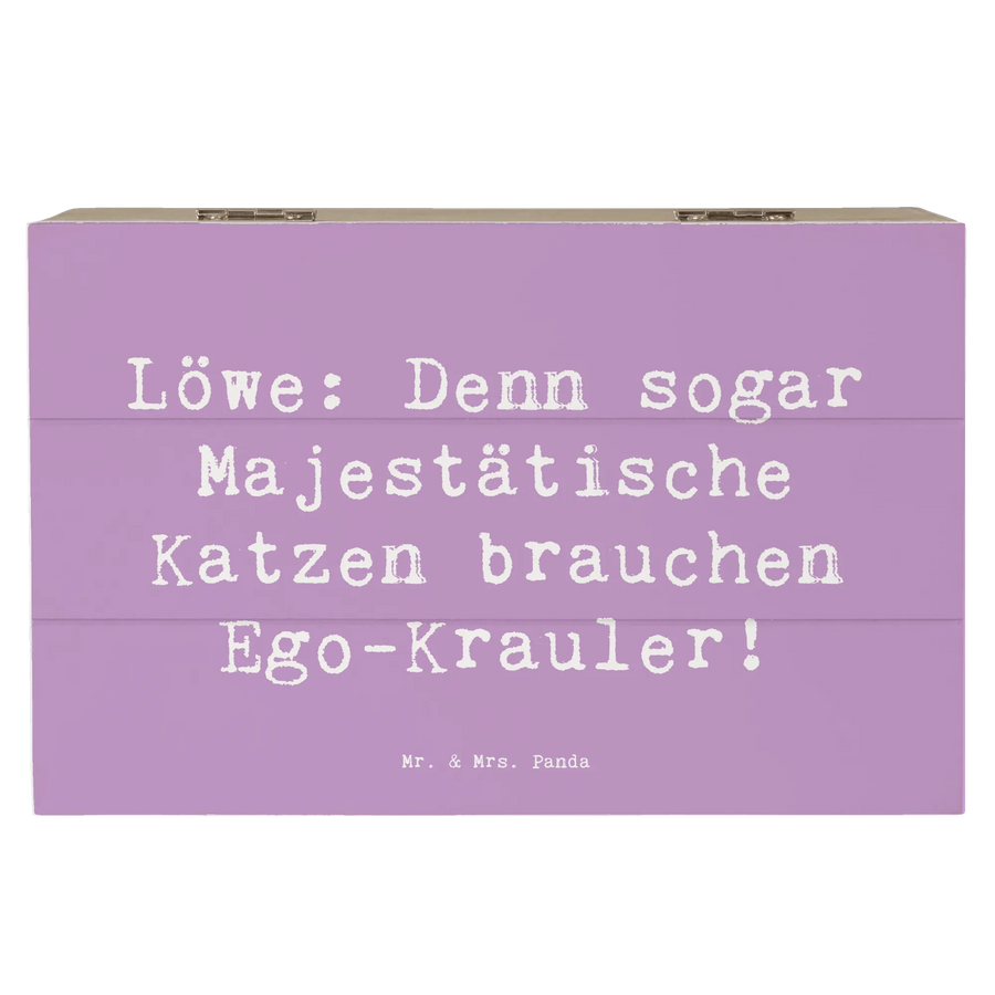 Der eingravierte Slogan "Löwe: Denn sogar Majestätische Katzen brauchen Ego-Krauler!" bringt nicht nur ein Lächeln auf die Lippen, sondern macht die Kiste zu einem ganz besonderen Hingucker.