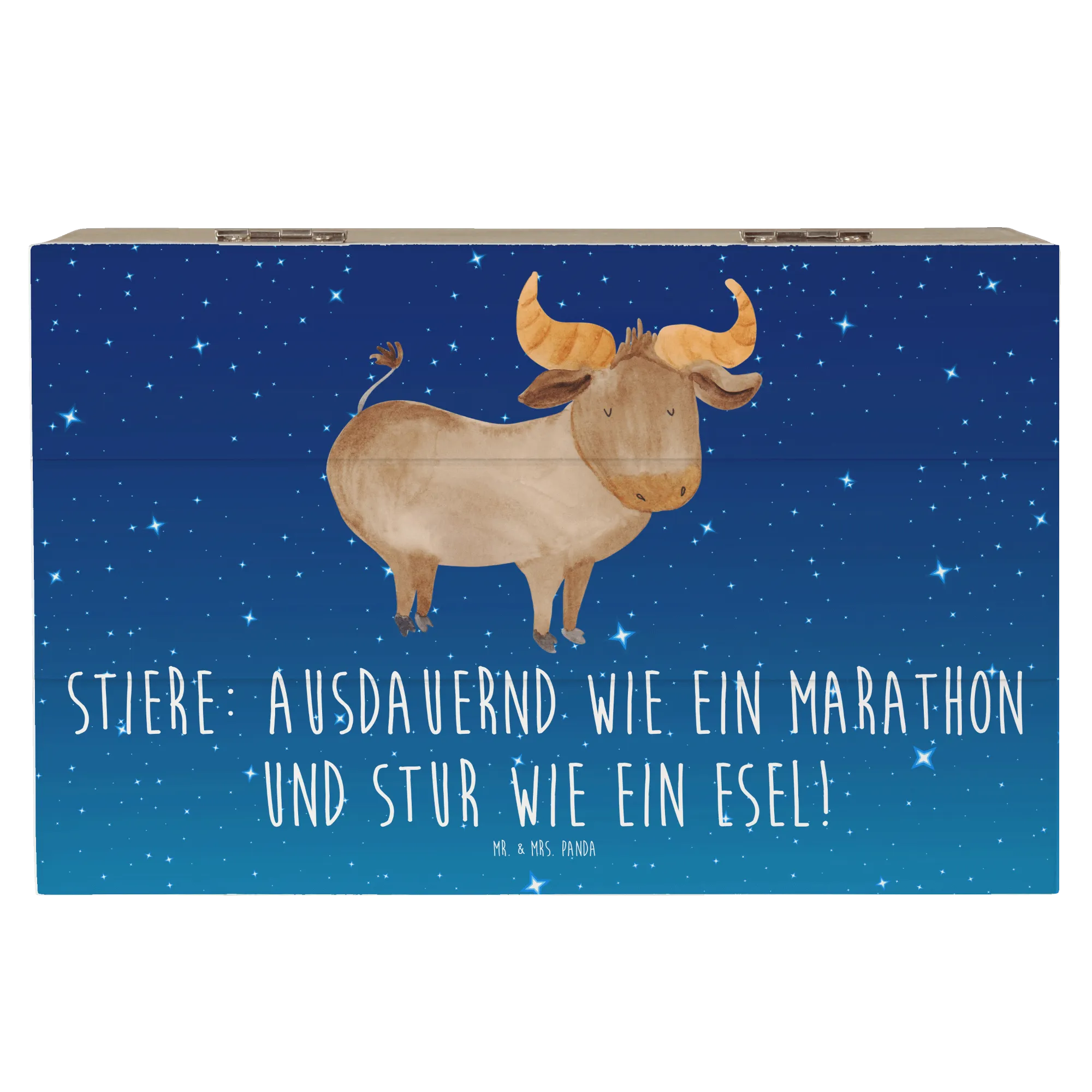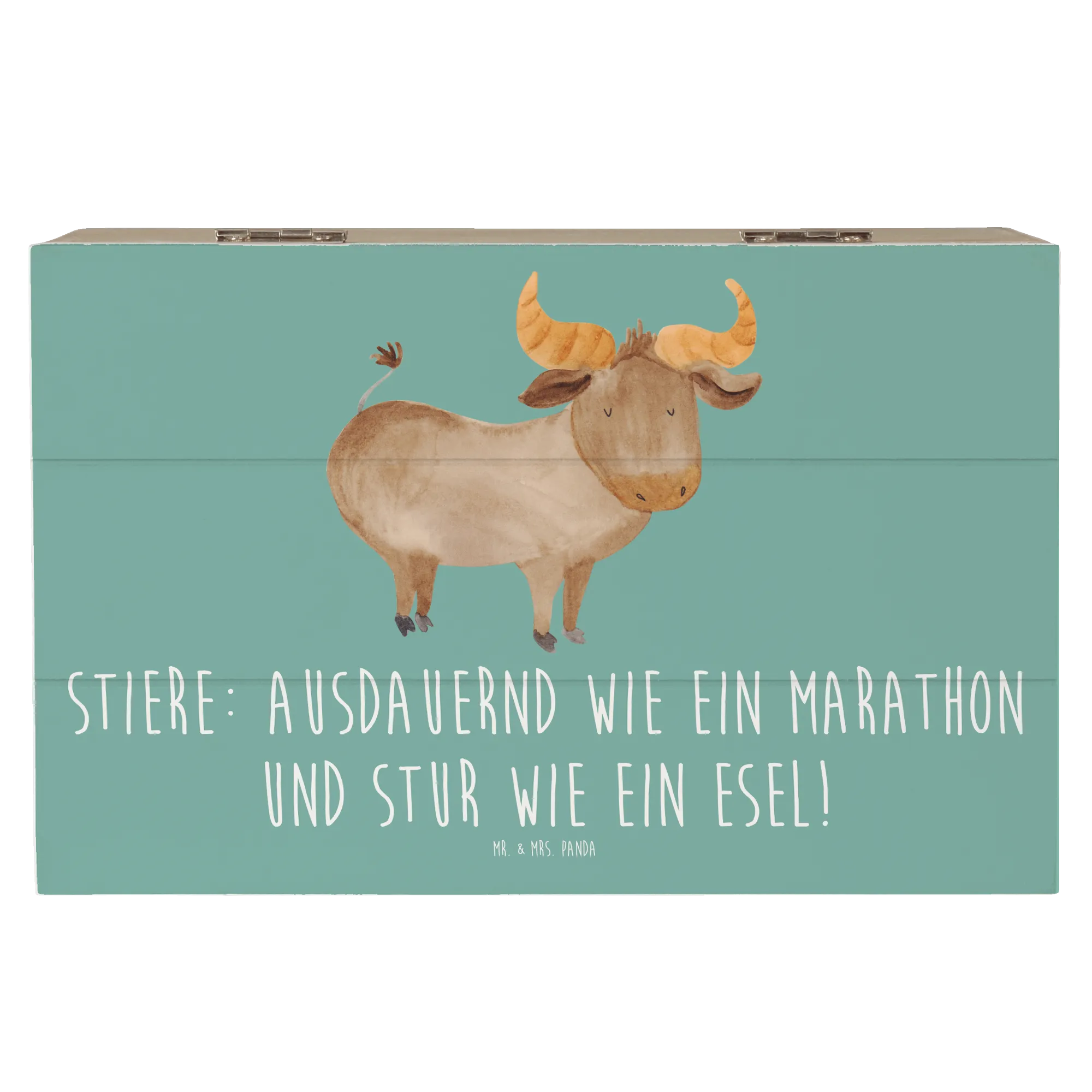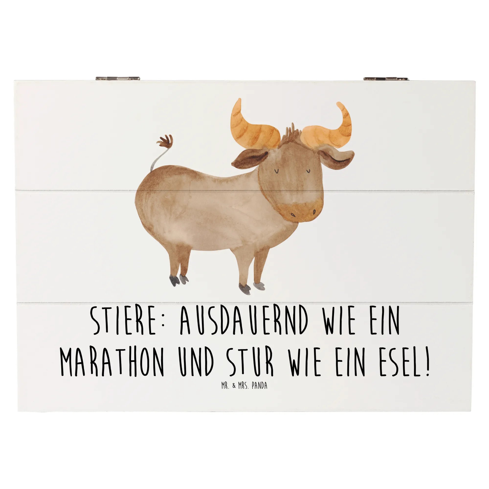 Die wunderschöne Holzkiste mit dem süßen Stier-Motiv von Mr. & Mrs. Panda ist das perfekte Geschenk für alle, die das Sternzeichen Stier lieben!