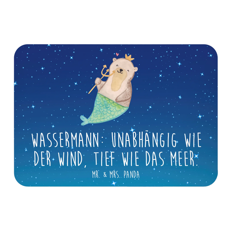 Handgezeichnet von Mr. & Mrs. Panda zeigt dieser Magnet einen charmanten Otter, der eine goldene Krone trägt und mit einer Fischflosse und einem Dreizack ausgestattet ist, ganz in typischer Wassermann-Manier. Mit einer Größe von 52 mm x 74 mm liegt der Magnet sehr gut in der Hand und findet einen festen Platz an deinem Kühlschrank oder auch an deiner Pinnwand. Gefertigt aus feinem Holz, ist der Magnet nicht nur supermagnetisch, sondern auch besonders farbenfroh.