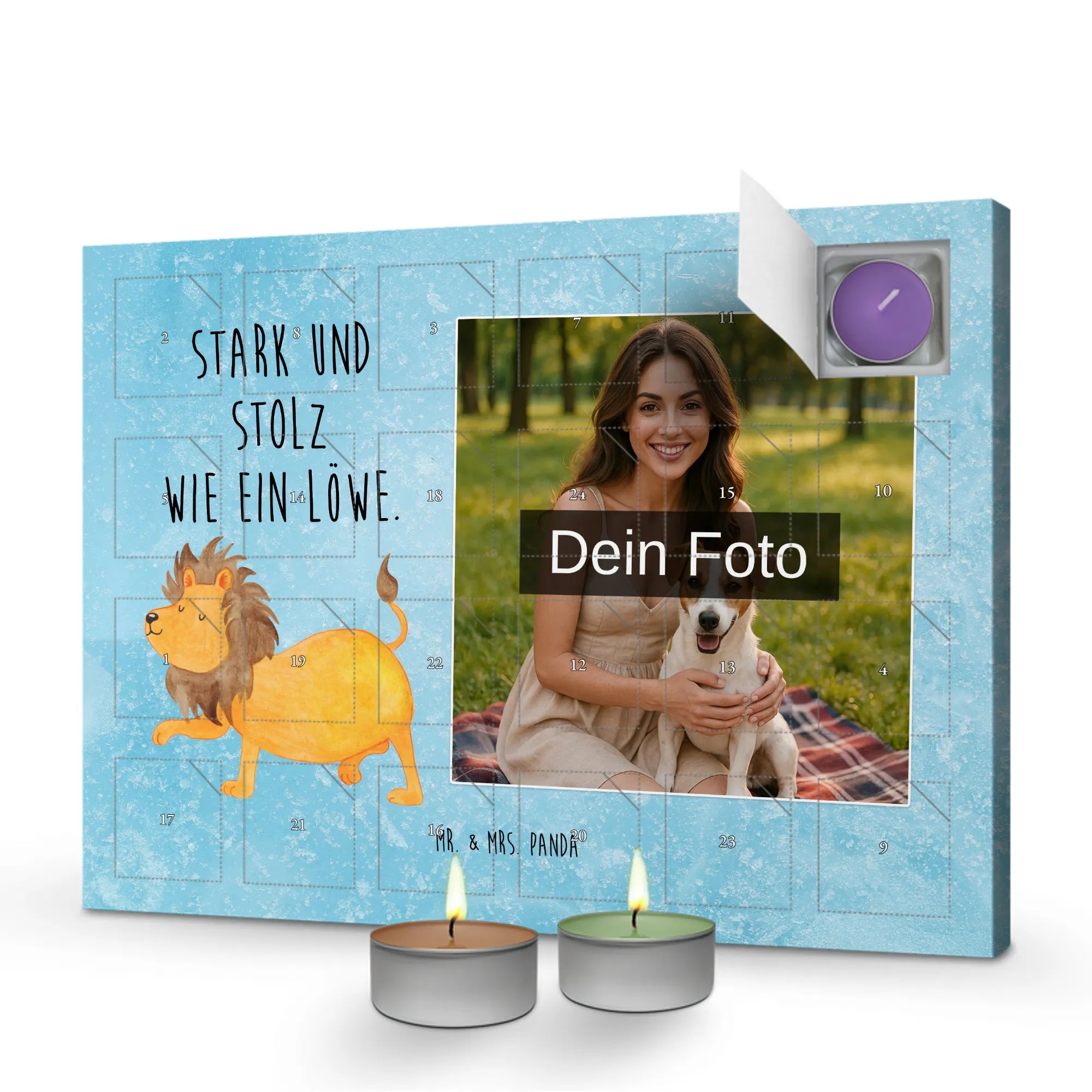 Personalisierter Duftkerzen Foto Adventskalender Sternzeichen Löwe - Eisblau