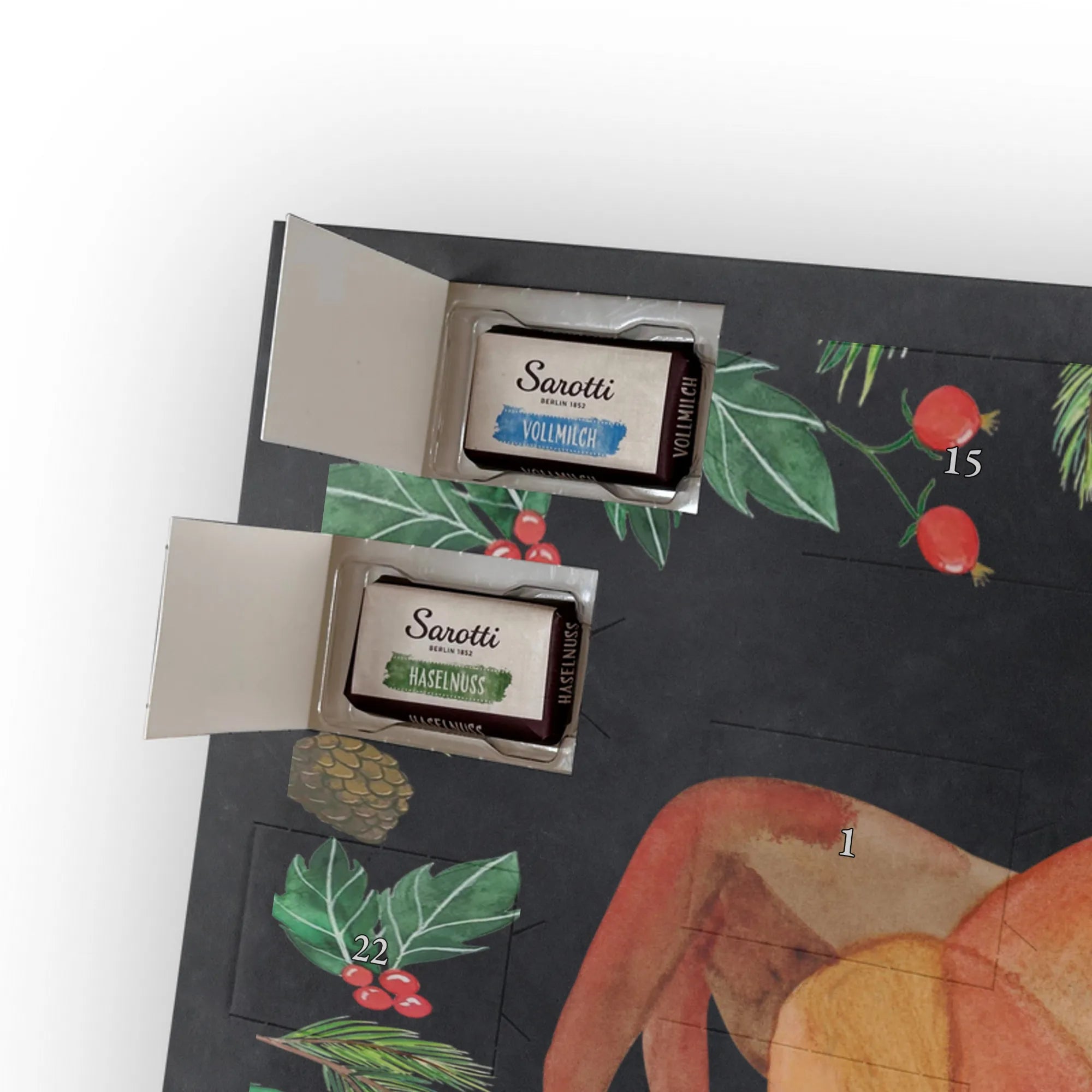 Mach die Vorweihnachtszeit besonders süß mit unserem Schoko-Adventskalender von Mr. & Mrs. Panda. Fröhliche Illustrationen und liebe Sprüche schmücken Vorder- und Seitenflächen, gedruckt in brillanter Qualität und veredelt mit einer seidenmatten Oberfläche für ein warmes, elegantes Finish. Der Kalender ist nicht personalisierbar, überzeugt dafür durch praktische Nutzung: zum Aufhängen oder Aufstellen geeignet. Hinter den 24 Türchen verbergen sich einzeln verpackte Schokoladentäfelchen in vier köstlichen Geschmacksrichtungen – Vollmilch, Nougat, Zartbitter und Haselnuss – von Sarotti® und Confiserie Heidel®. Insgesamt liefert der Kalender 107 g Markenschokolade. Maße: 355 mm x 245 mm x 11 mm – ideal, um Adventsfreude dekorativ zu präsentieren. Verschenke Liebe und Genuss in einem schönen Design, das sich wunderbar in jede Weihnachtsecke einfügt. Mr. & Mrs. Panda wünscht dir eine gemütliche Adventszeit voller kleiner, süßer Überraschungen.