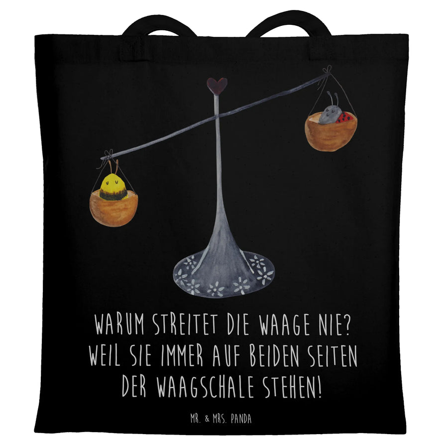 Unsere liebevoll gestaltete Tragetasche mit dem niedlichen Waage-Motiv bringt Charme und Alltagstauglichkeit in Einklang. Das handgezeichnete Aquarell-Motiv wurde von Mrs. Panda entworfen und trägt den frechen Spruch: "Warum streitet die Waage nie? Weil sie immer auf beiden Seiten der Waagschale stehen!" – ein perfektes Geschenk für alle, die die Eigenschaften der Waage mit einem Lächeln tragen.