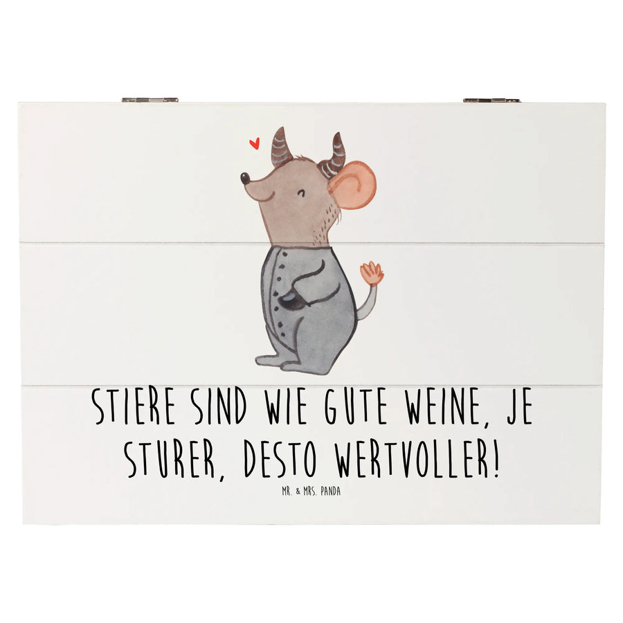 Die wunderschöne Holzkiste von Mr. & Mrs. Panda ist der perfekte Begleiter für alle, die wertvolle Erinnerungen bewahren möchten! Mit ihrem charmanten Motiv des Sternzeichens Stier und dem Slogan "Stiere sind wie gute Weine, je sturer, desto wertvoller!" zaubert sie jedem ein Lächeln ins Gesicht.
