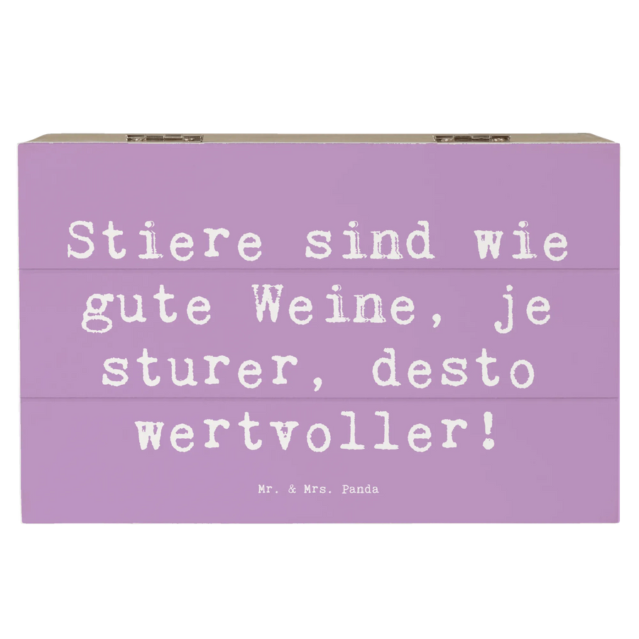 Entdecke die wunderschöne Holzkiste von Mr. & Mrs. Panda, die perfekt für alle Stier-Liebhaber ist! Mit dem zauberhaften Slogan „Stiere sind wie gute Weine, je sturer, desto wertvoller!“ ist diese Kiste nicht nur ein praktischer Aufbewahrungsort, sondern auch ein liebevolles Geschenk.