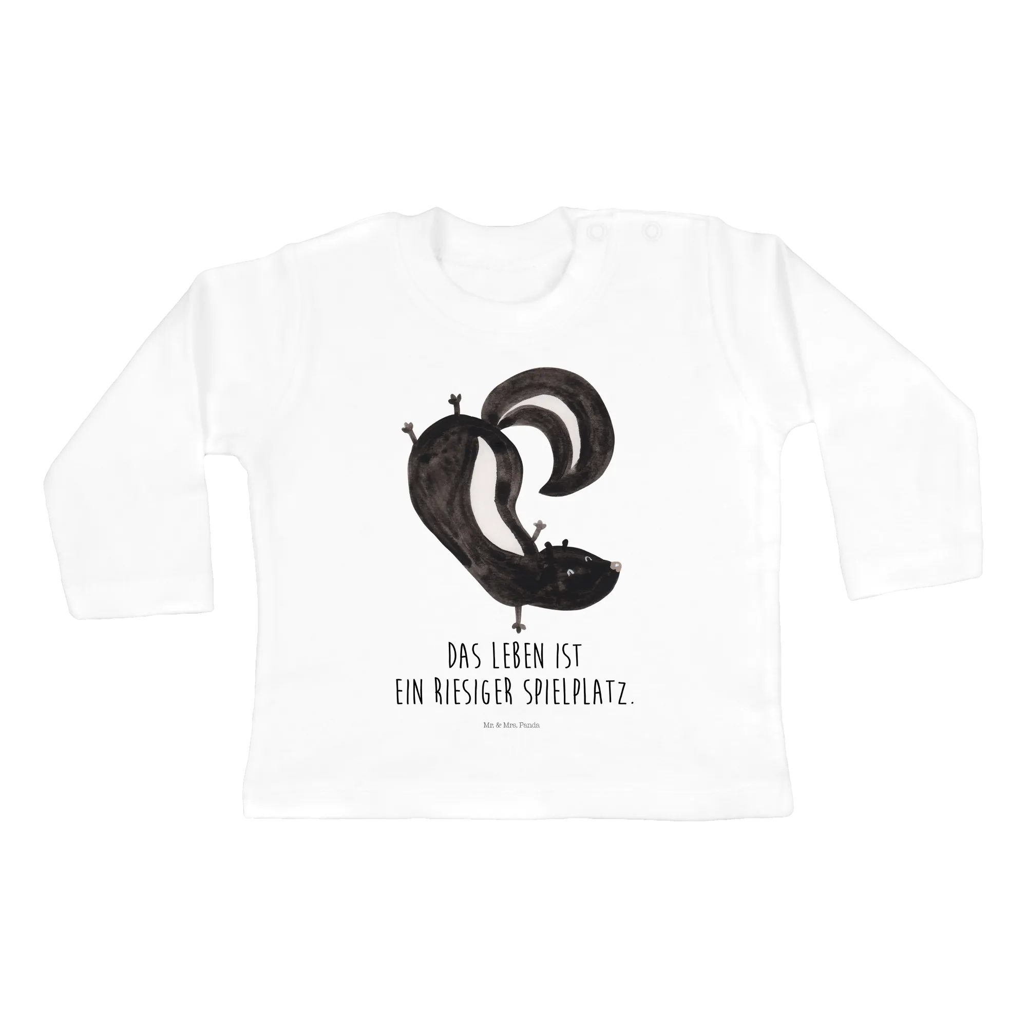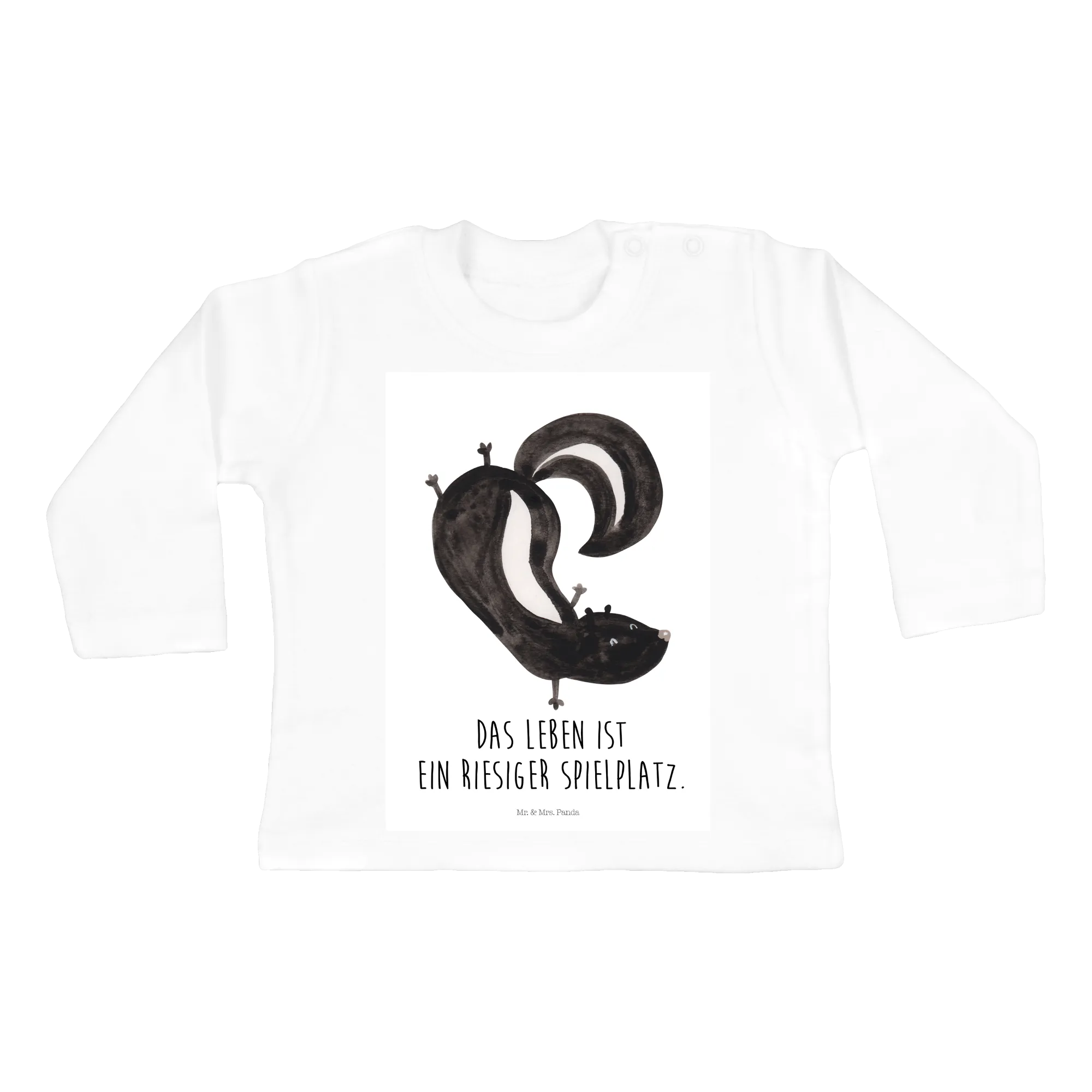 Das Motiv des verspielten Stinktiers, das fröhlich einen Handstand macht, wurde liebevoll von Mrs. Panda mit Aquarellfarben handgezeichnet. Es vermittelt Lebensfreude und bringt jedem Kind ein Lächeln ins Gesicht. Dazu kommt der hübsche Spruch "Das Leben ist ein riesiger Spielplatz.", der perfekt zu der unbeschwerten Kindheit passt.