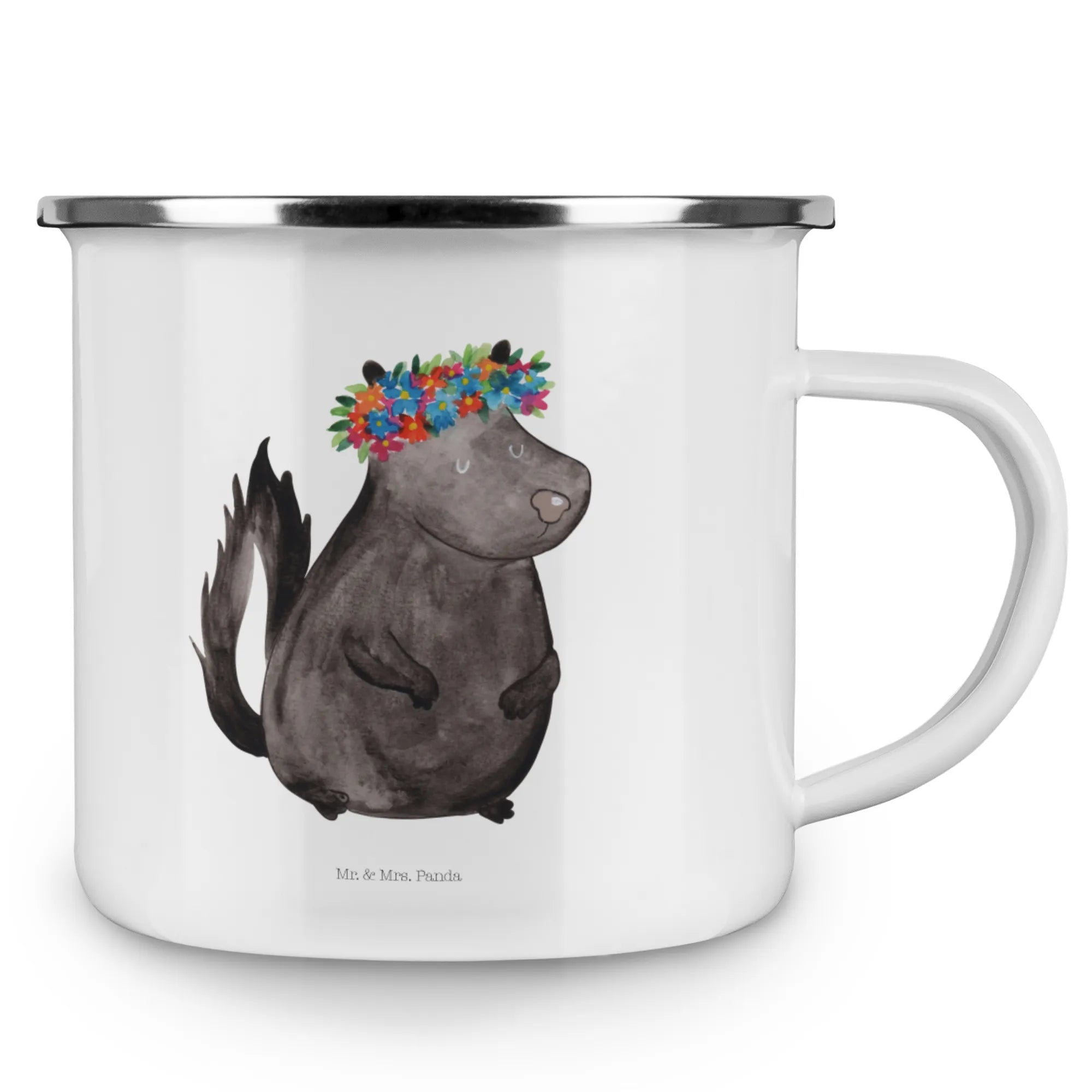 Mr. & Mrs. Panda Camping Emaille Tasse – Stinktier Blumenmädchen