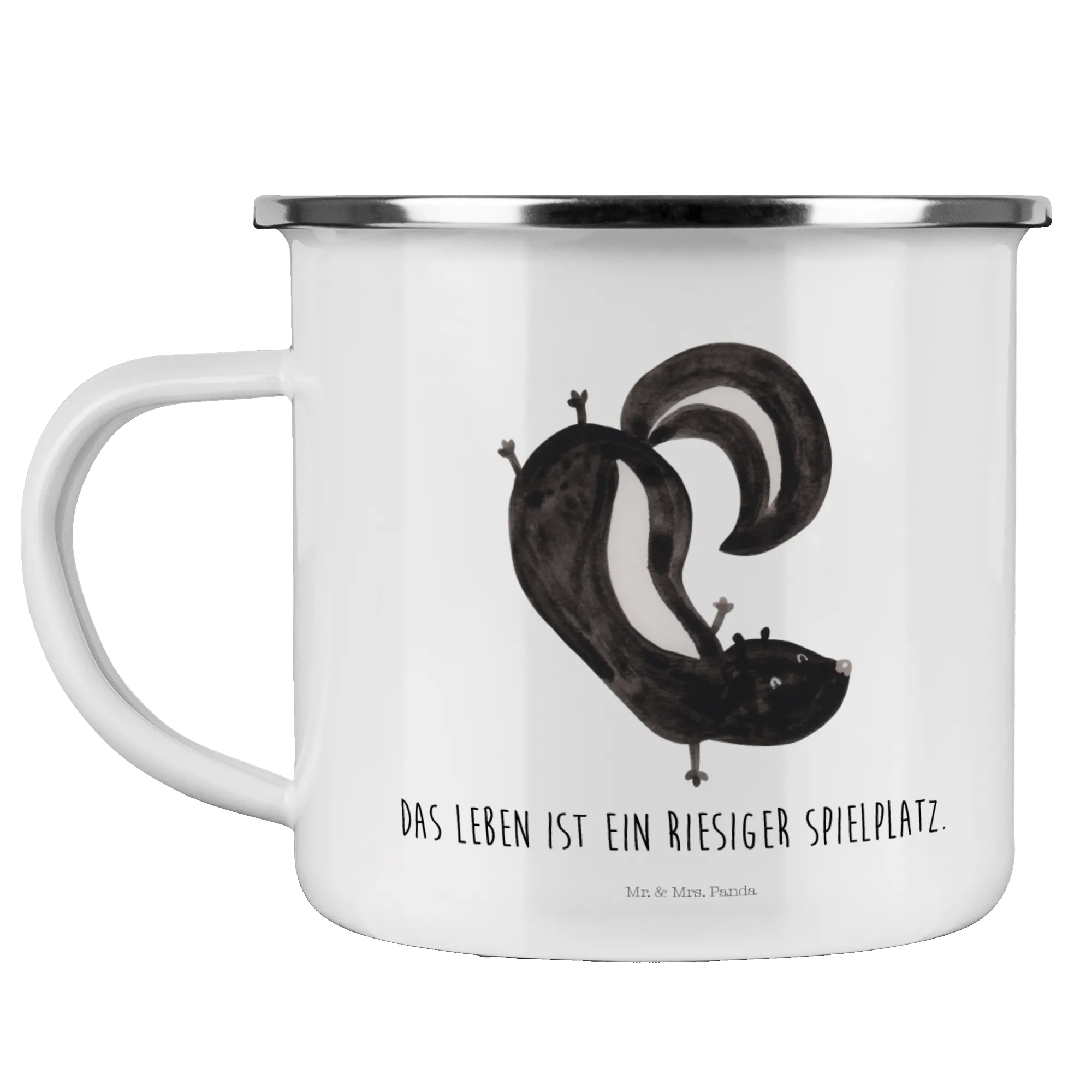 Du liebst die Natur und möchtest jeden Moment im Freien in vollen Zügen genießen? Dann ist die Camping Emaille Tasse mit dem niedlichen Stinktier Handstand Motiv von Mr. & Mrs. Panda genau das richtige für dich!