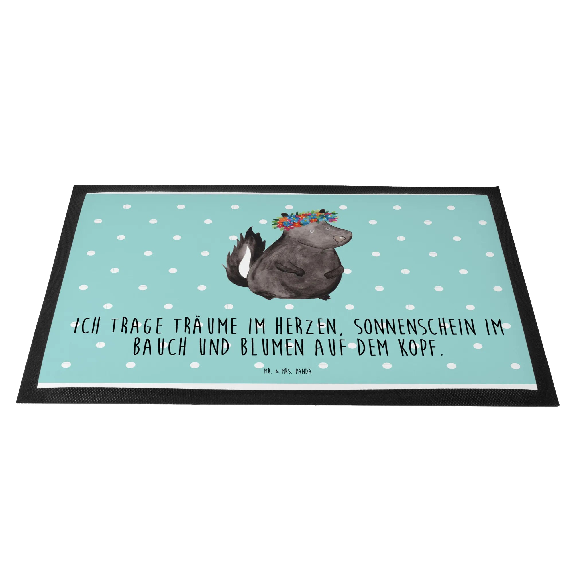 Die Fußmatte "Stinktier Blumenmädchen" von Mr. & Mrs. Panda ist das perfekte Geschenk für alle, die liebevolle und funktionale Accessoires für ihr Zuhause suchen. Diese Fußmatte, auch bekannt als Schmutzmatte oder Eingangsteppich, verbindet stilvolles Design mit hoher Funktionalität.